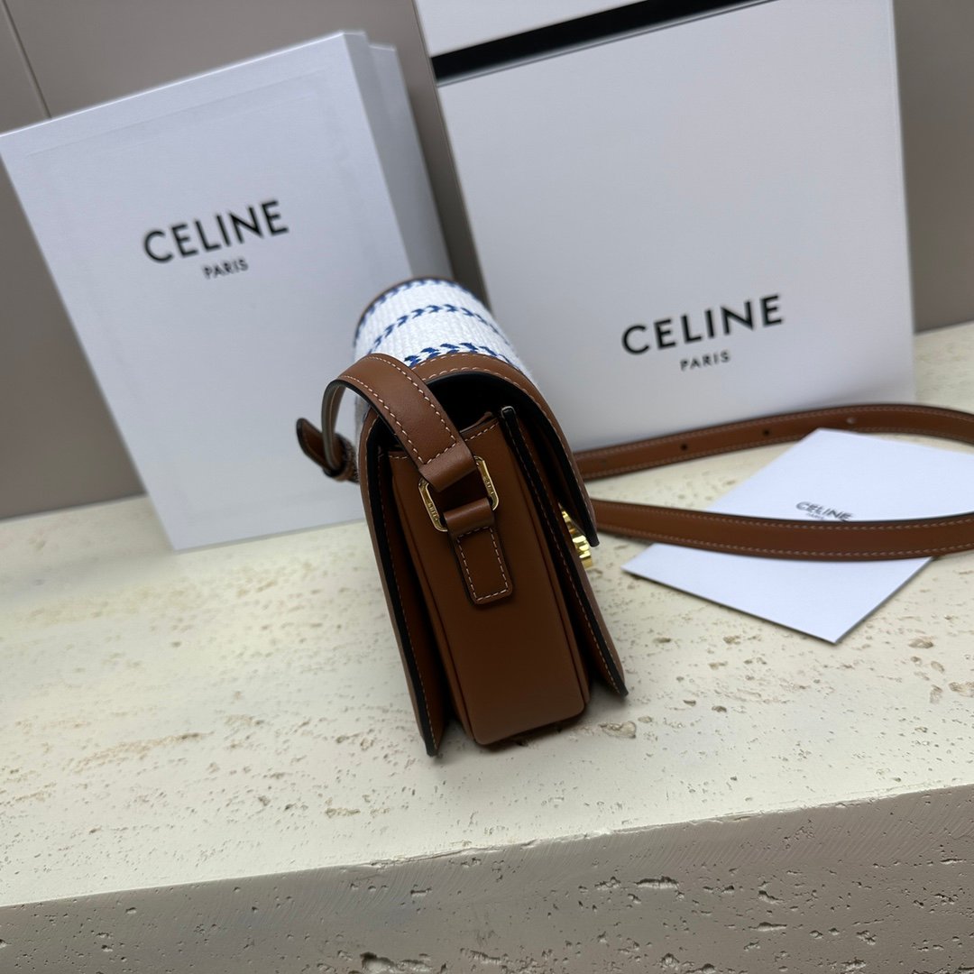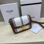 TEEN TRIOMPHE BLUE & WHITE FABRIC WITH CALF LEATHER HANDBAG