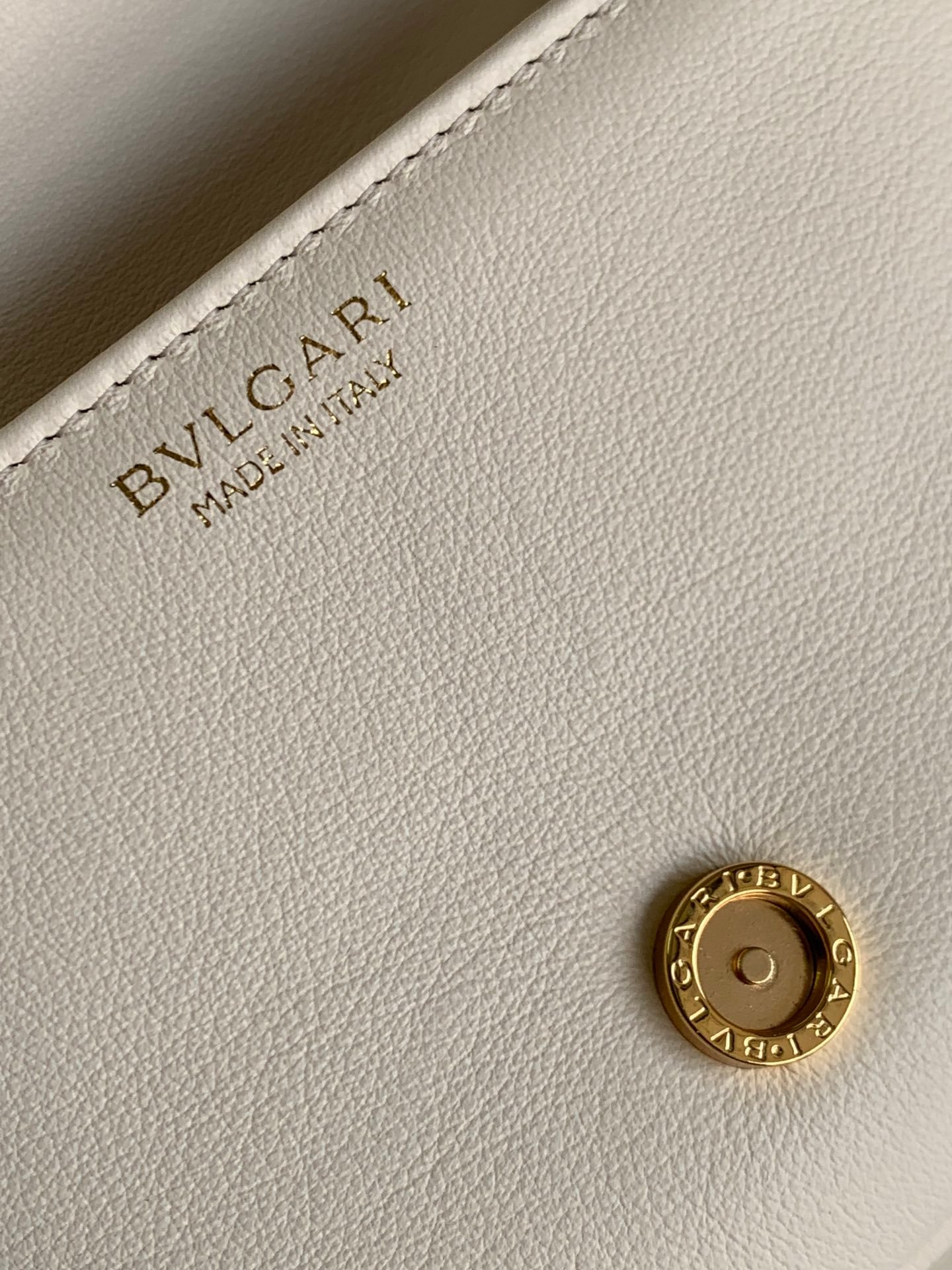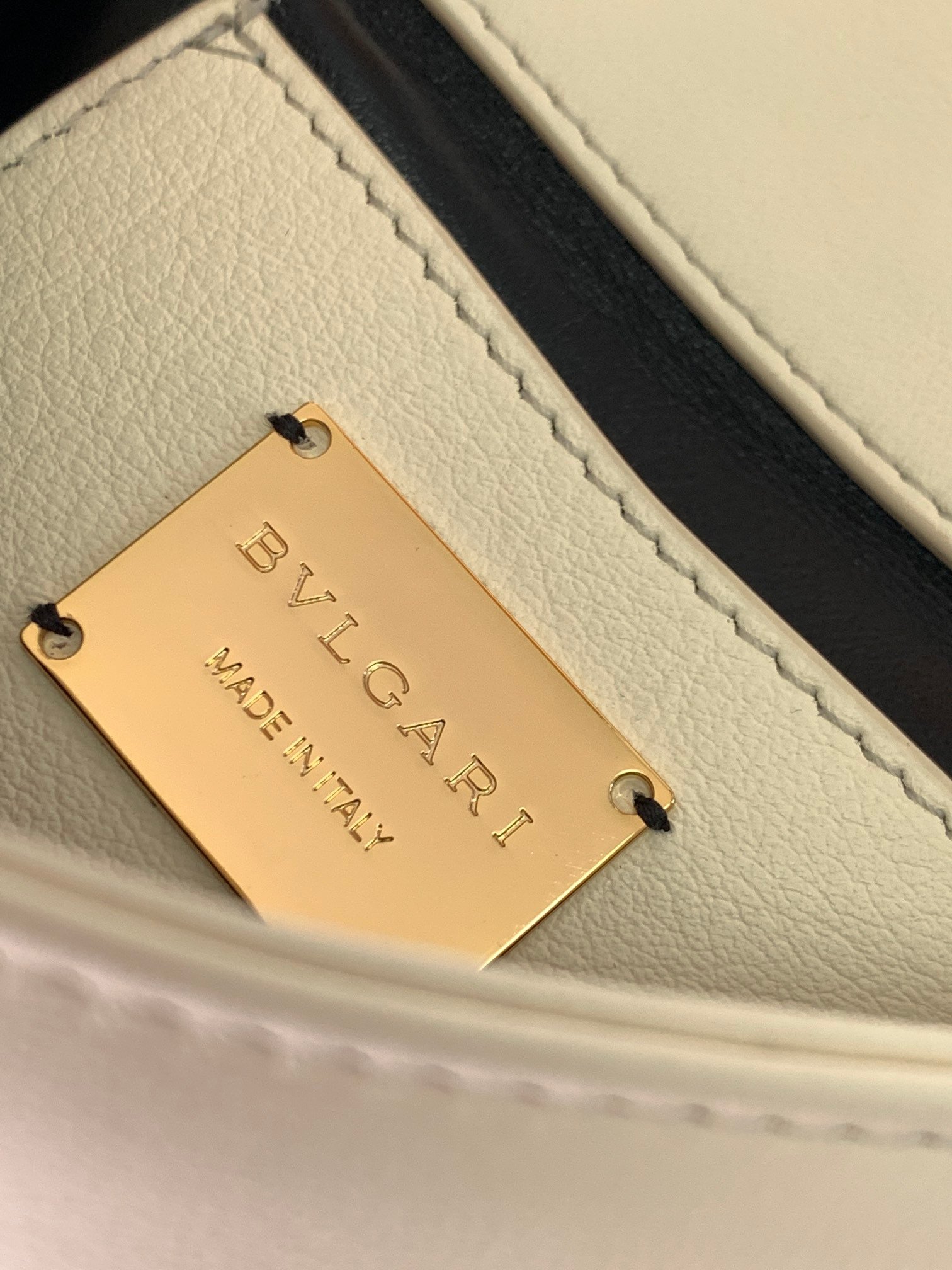 🔹draws its inspiration from the glamor of the cabochon egg faceted gemstones that grace the surface of the bag. The ivory calfskin body of this bag is soft and smooth, inspired by the surface of a vintage Bulgari watch ➰