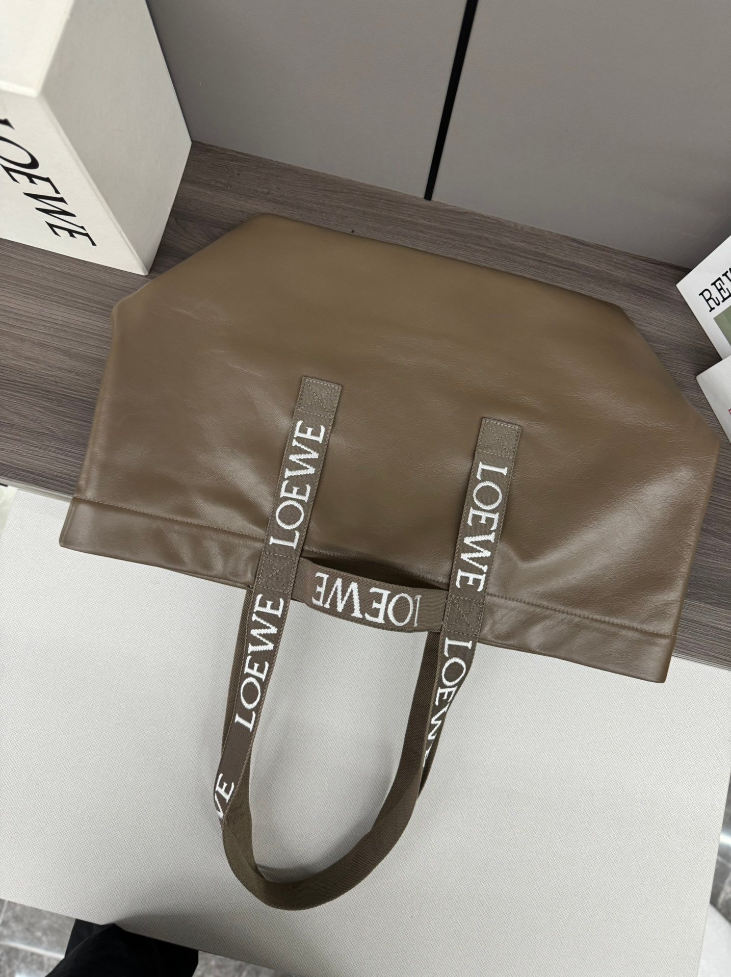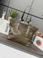 The L⊚℮w℮🌟 Paper Grain Cowhide Fold Shopper Handbag 🆕 is a versatile , lightweight handbag with double carry handles adorned with the brand’s logo. The bottom of the bag folds flat, making it perfect for traveling. This version is made from paper-grain cowhide leather* Carried on the shoulder or by the top handle* One interior zipped pocket* Holds a 13″ laptop* Herringbone cotton canvas lining