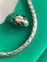 Home BAGS BVLGARI The new Chip Editionn BV*GAR💚n SERPENTI BAIA small shoulder bagn🔸 in soft and hardwearing bright green emerald metropolitan calf leathern is adorned with the iconic Snake Head magnetic clasp🐍 and its seductive and glamorous scalesn🔹 features A single compartment with top zipper closure, an interior open flat pocket and BULGARI metal logo on the back n 🔺Fitted with 2 ⃣️ detachable snake thick chains and an additional chain device to extend the shoulder strap at your leisure for versatile wearing styles. nWith upgraded gold gift box🎁nSize:27.5*18*4.5Cm2932080801