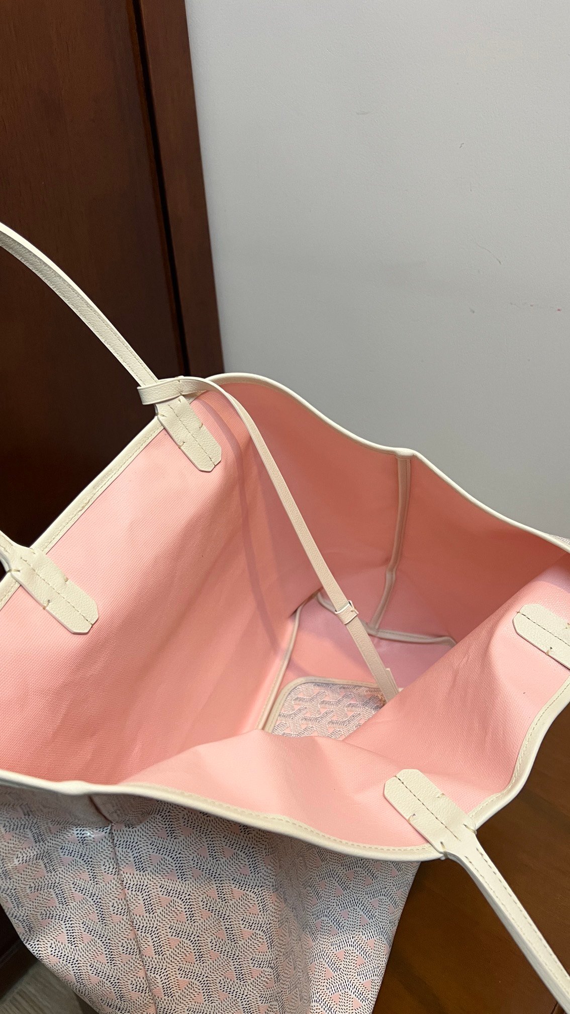 The SAINT LOUIS small tote bag is made of GOYARDINE canvas and is completely unlined. It is very lightweight and can be used both front and back. The outside is made of GOYARDINE canvas, or the inside can be turned inside out to reveal the linen and cotton blend as the outer bag surface. It has two graduated thickness handles that can be carried in different ways. It has a removable inner pocket attached to one of the handles for quick access to items.CLAIRE-