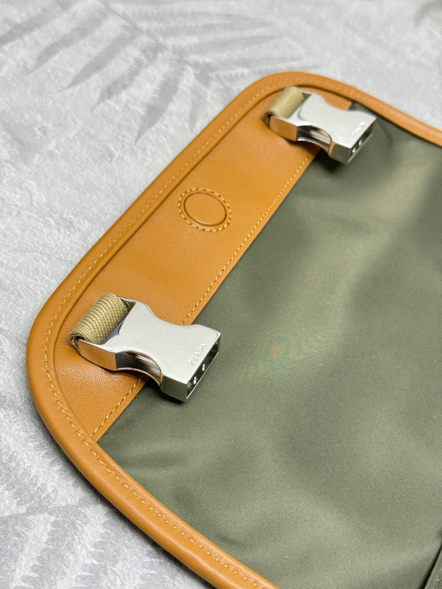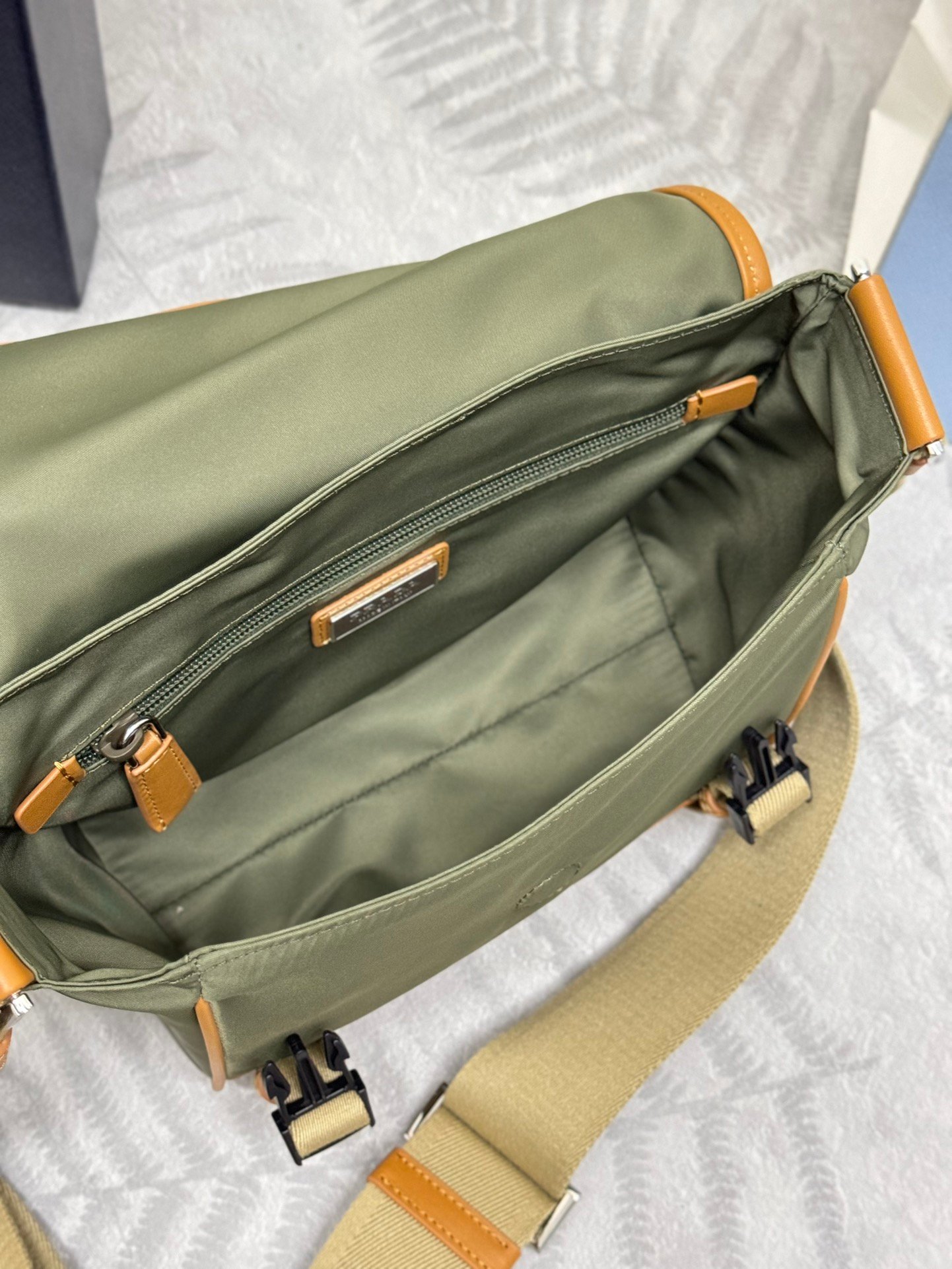 This new messenger bag 2VD052A is designed from recycled nylon yarn Re-Nylon with flap and snap closure, three exterior zippered pockets, interior zippered pocket and patch pocket. Large capacity space, adjustable woven trimmed shoulder strap, large capacity space. Another classic pop-up one, hurry up and get your hands on itn Size:H28.5×W30×L14.5cm