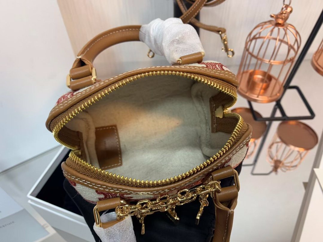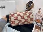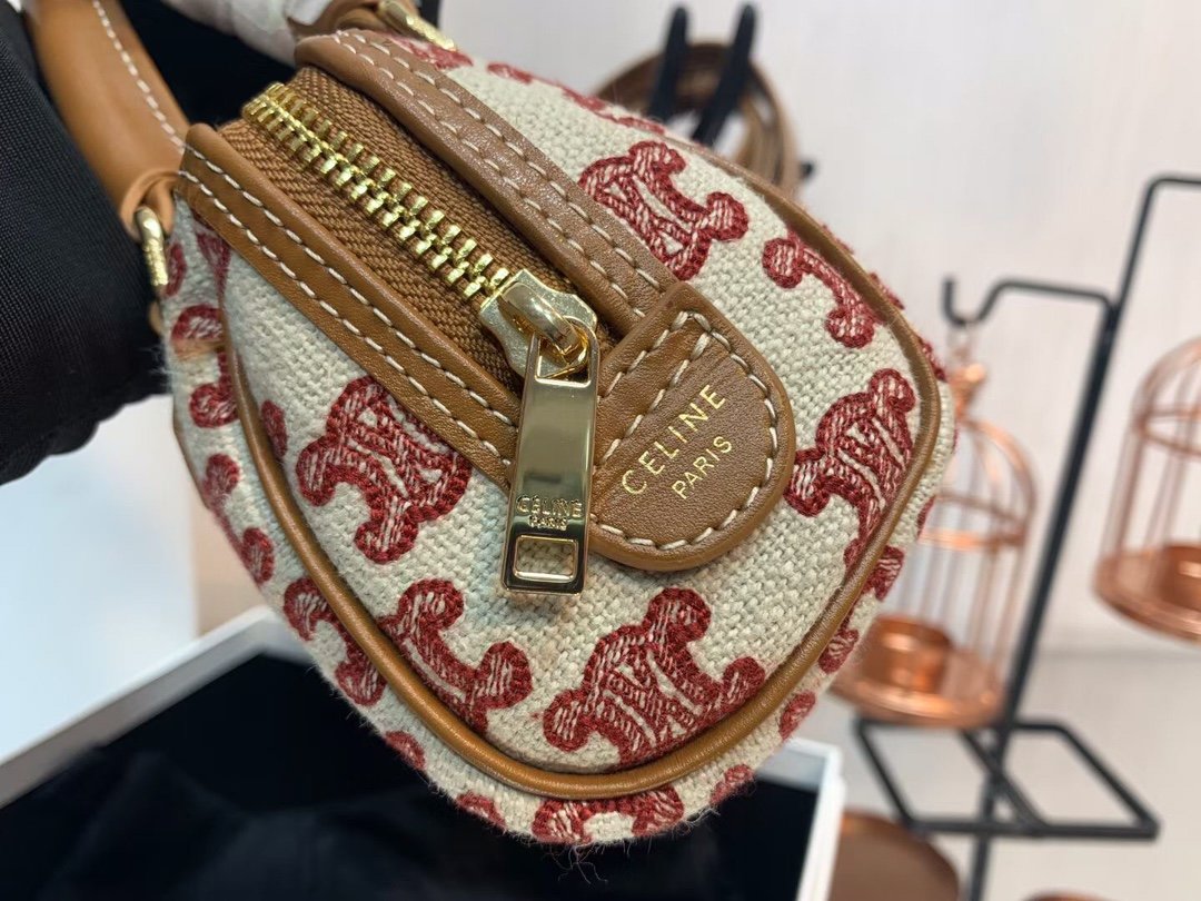 Home BAGS CELINE TRIOMPHE embroidered canvas mini Boston bag. Material: TRIOMPHE CANVAS logo printed canvas, cowhide leather trim, attached pendant (i.e. front of bag), size: 14cmX 9.5cmX 8cm (🔍195112) 600