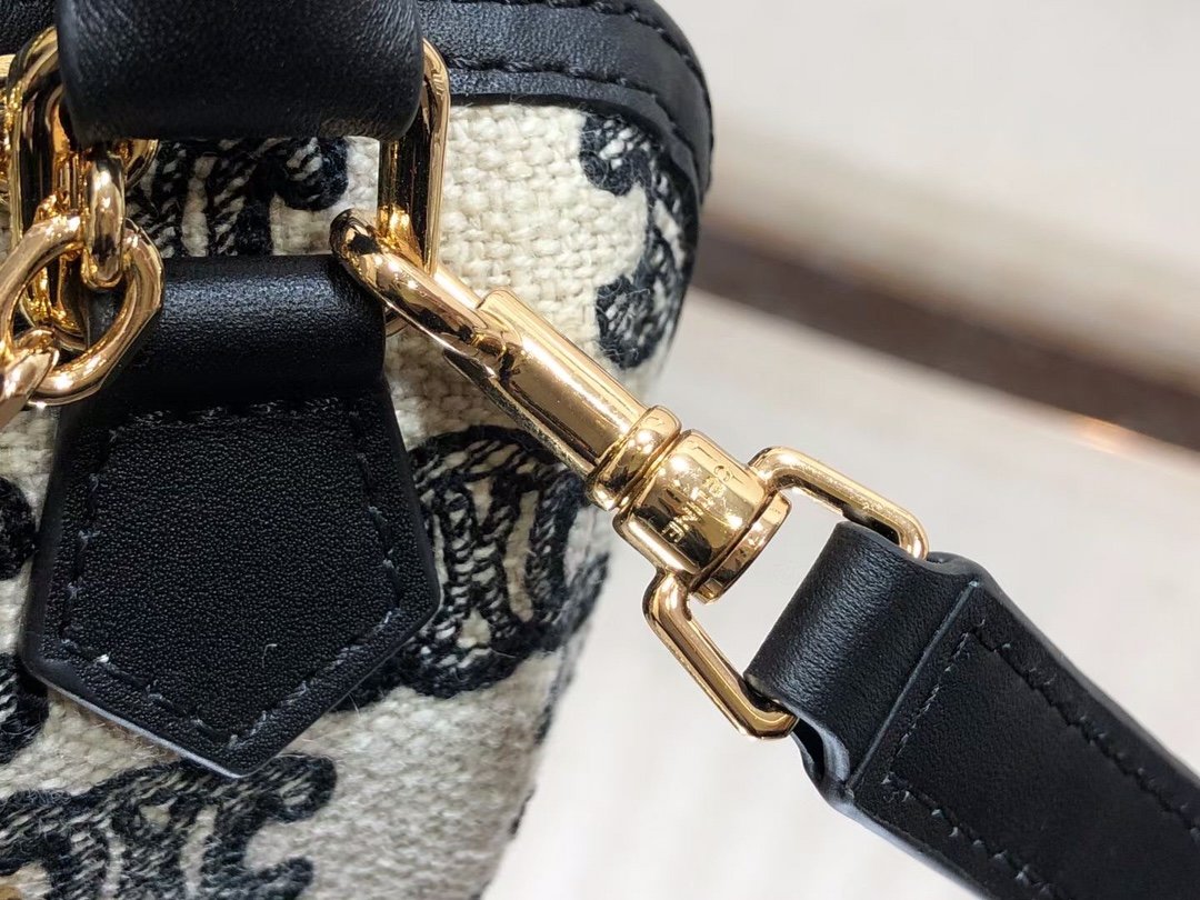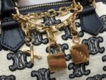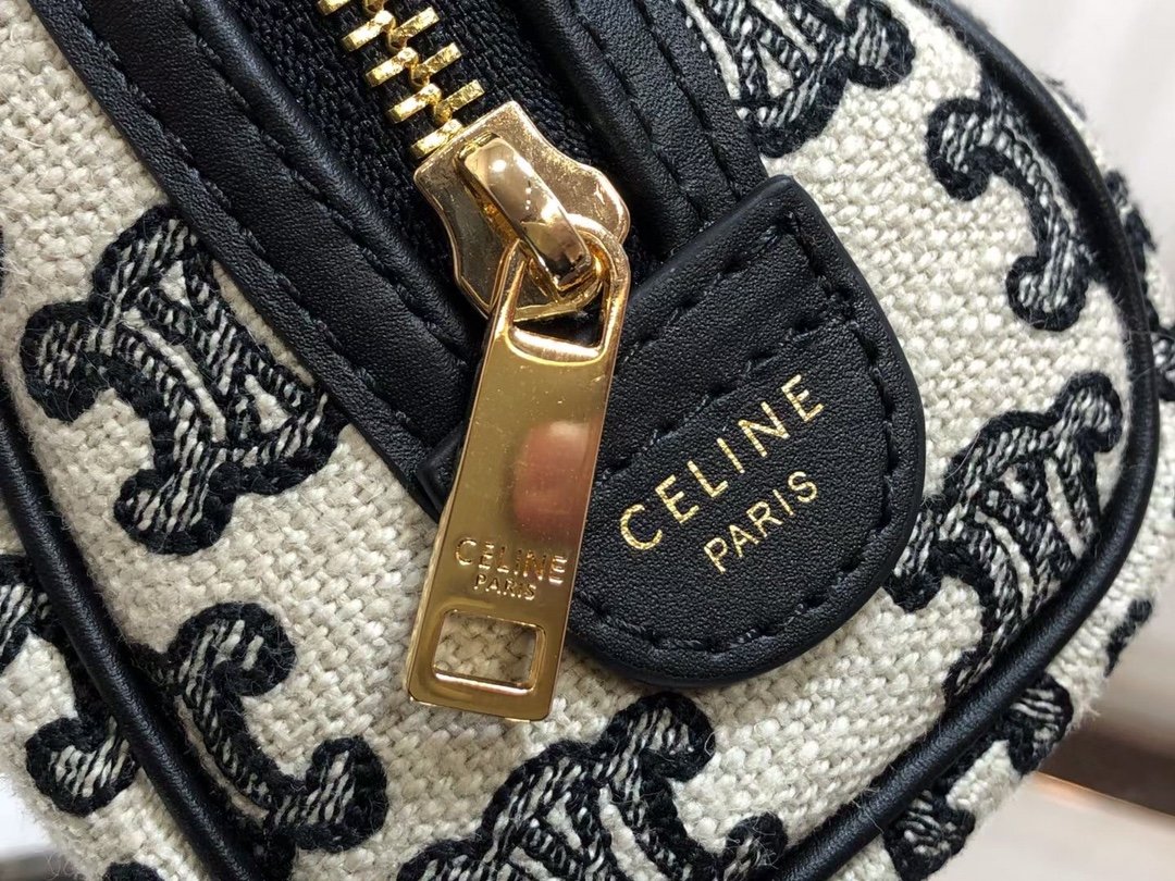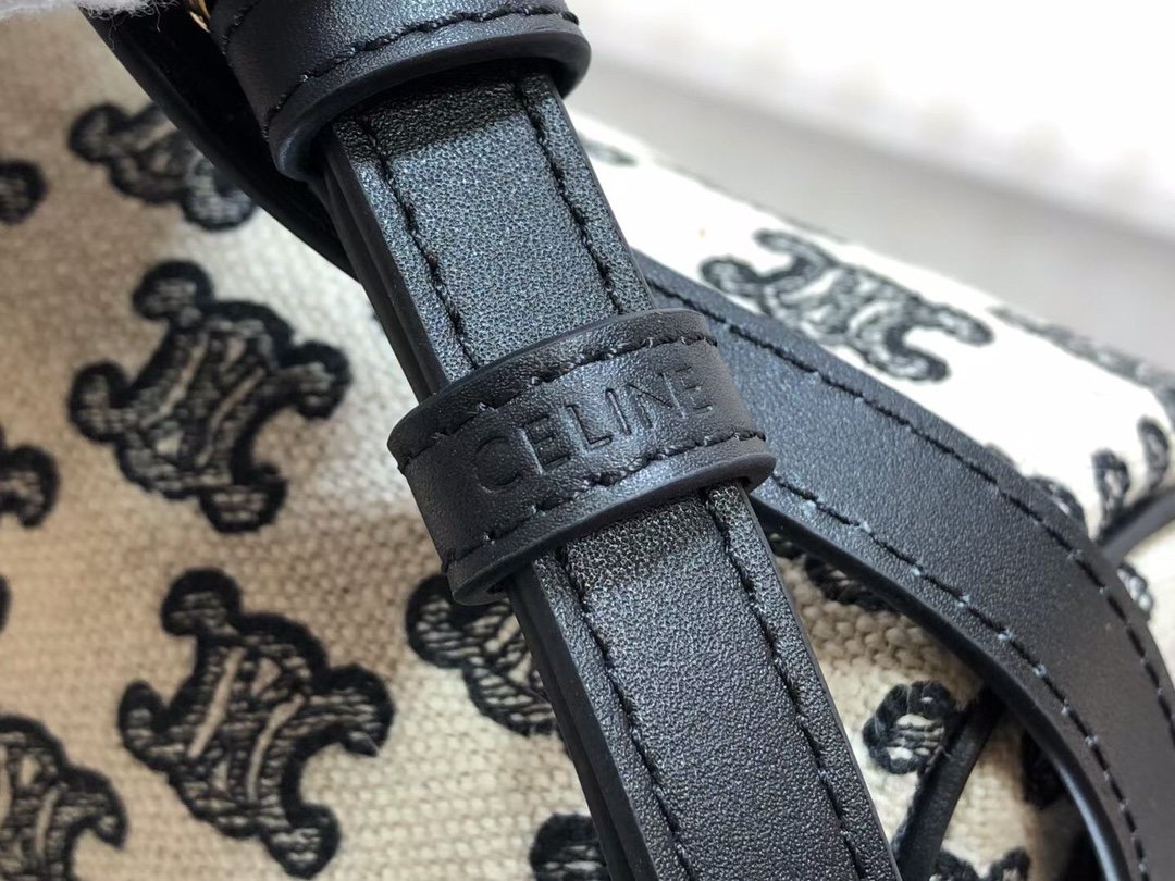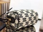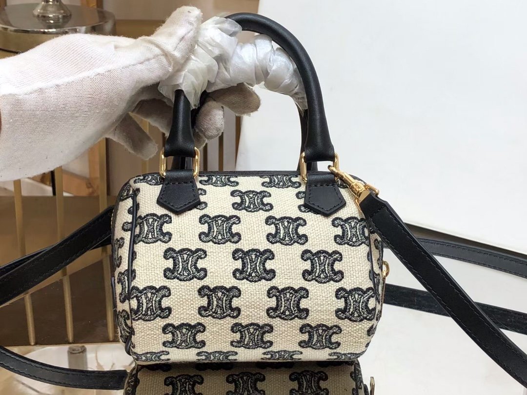 Home BAGS CELINE TRIOMPHE embroidered canvas mini Boston bag. Material: TRIOMPHE CANVAS logo printed canvas, cowhide leather trims, attached pendant (i.e. front of bag), Size: 14cmX 9.5cmX 8cm (🔍195112)n600
