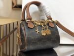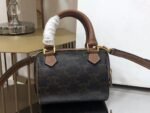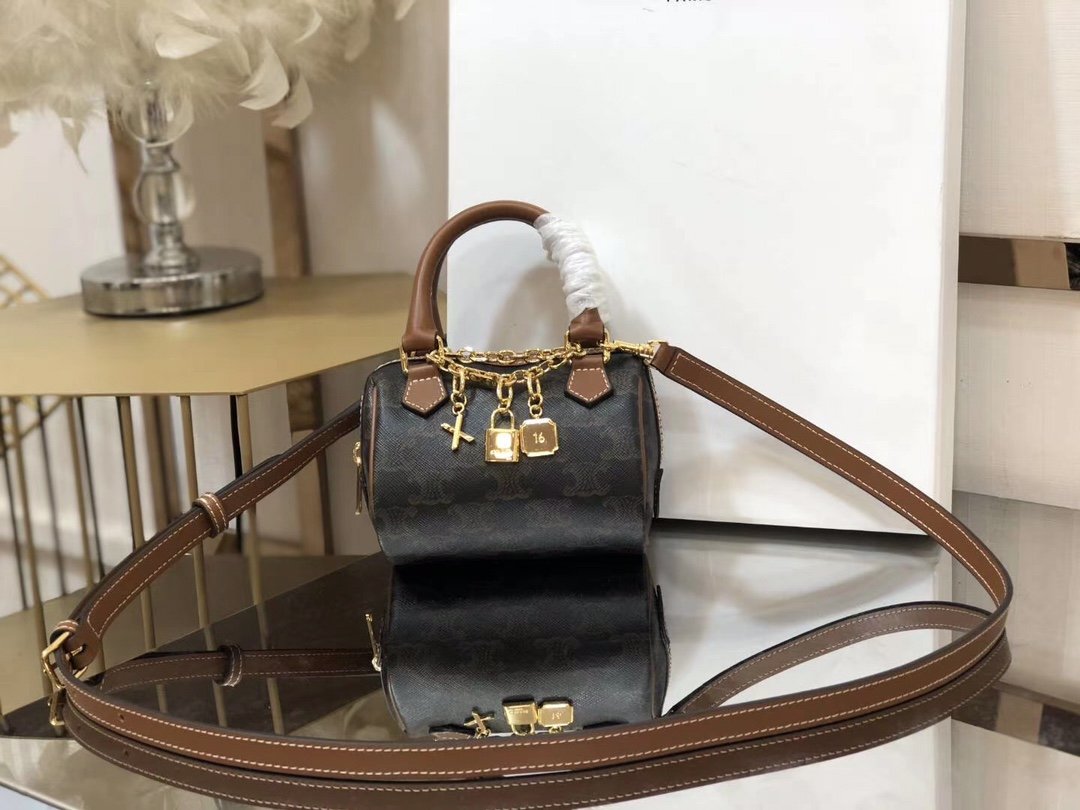 TRIOMPHE faux leather mini Boston bag. Material: TRIOMPHE CANVAS logo print, cowhide leather trim, hanging pendant (i.e. front of bag), size: 14cmX 9.5cmX 8cm (🔍195112) 580