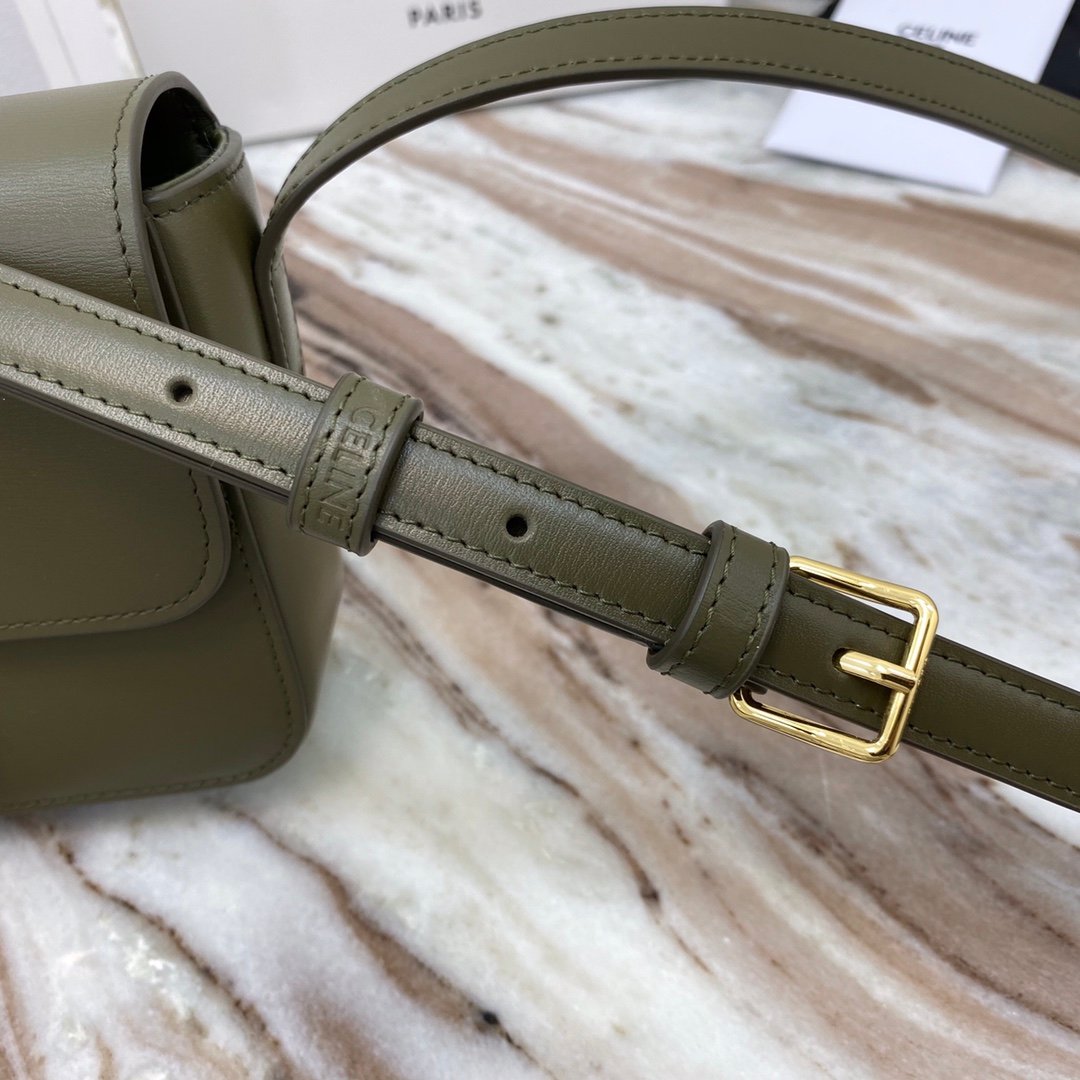 Home BAGS CELINE TRIOMPHE NANO (EXTRA SMALL) SHINY CALF LEATHER HANDBAG n6 X 5 X 2 INCHES (16.5 X 11.5 X 5 cm)n100% Calfskin leathern100% Lambskin leather liningnGolden metallic piecesnCrossbody and shoulder carrynTRIOMPHE Metallic textured locking claspnInterior flat pocketsnAdjustable Leather Shoulder Strap length 19 inches (49 cm)nNo. : 191903bf4.24rs i780