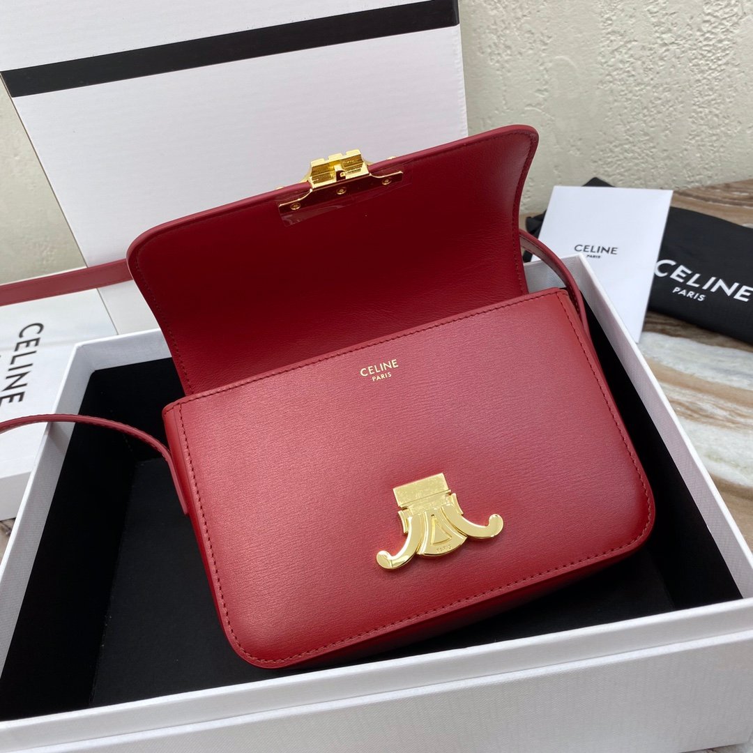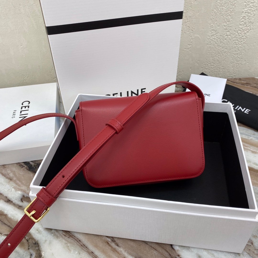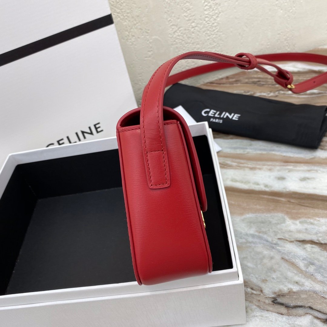 Home BAGS CELINE TRIOMPHE NANO (EXTRA SMALL) SHINY CALF LEATHER HANDBAG n6 X 5 X 2 INCHES (16.5 X 11.5 X 5 cm)n100% Calfskin leathern100% Lambskin leather liningnGolden metallic piecesnCrossbody and shoulder carrynTRIOMPHE Metallic textured locking claspnInterior flat pocketsnAdjustable Leather Shoulder Strap length 19 inches (49 cm)nNo. : 191903bf4.24rs i780