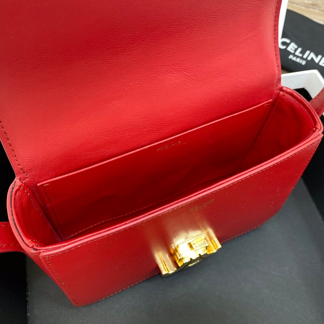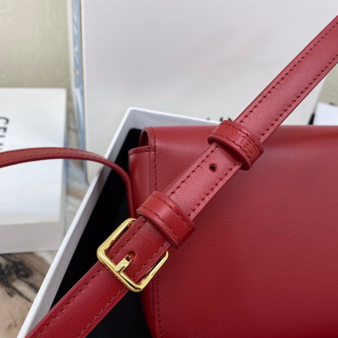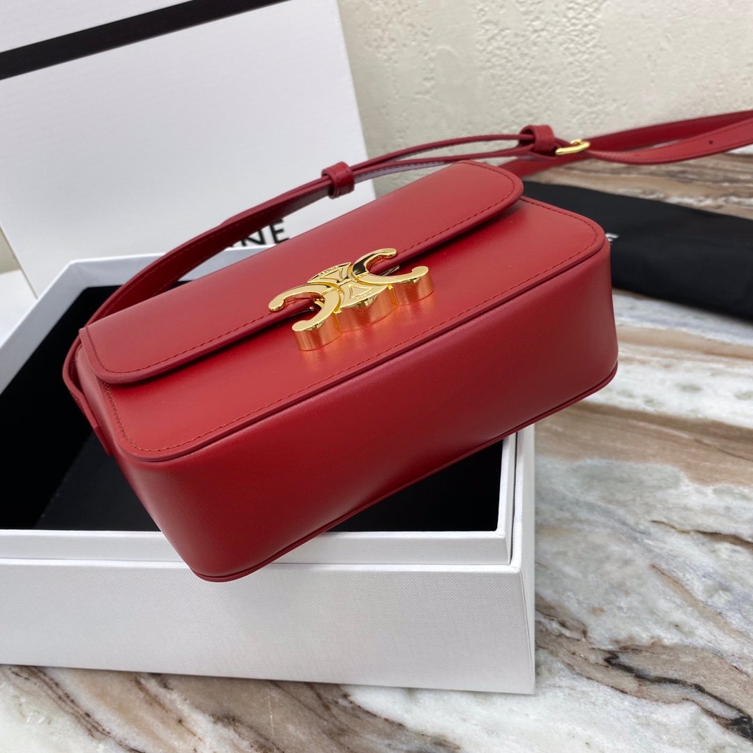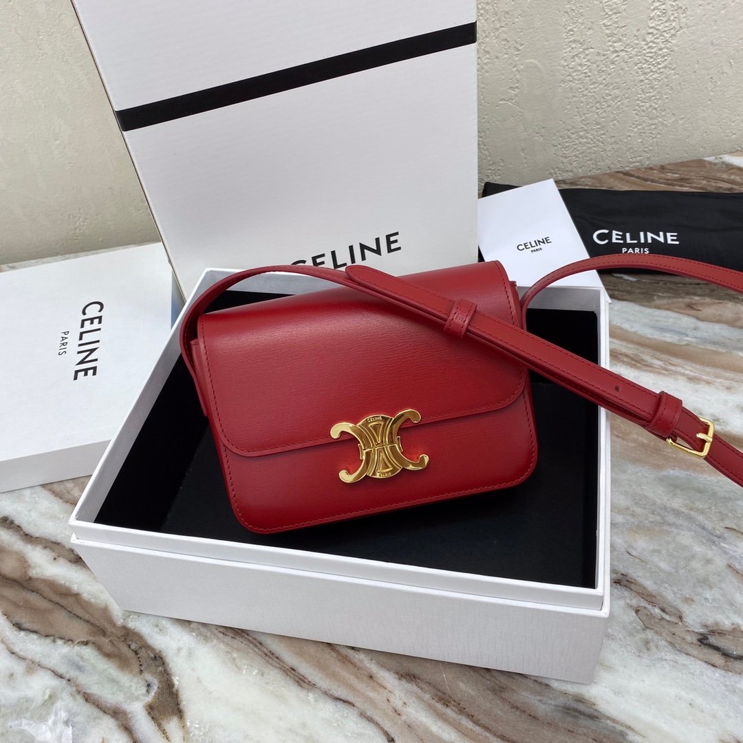 Home BAGS CELINE TRIOMPHE NANO (EXTRA SMALL) SHINY CALF LEATHER HANDBAG n6 X 5 X 2 INCHES (16.5 X 11.5 X 5 cm)n100% Calfskin leathern100% Lambskin leather liningnGolden metallic piecesnCrossbody and shoulder carrynTRIOMPHE Metallic textured locking claspnInterior flat pocketsnAdjustable Leather Shoulder Strap length 19 inches (49 cm)nNo. : 191903bf4.24rs i780