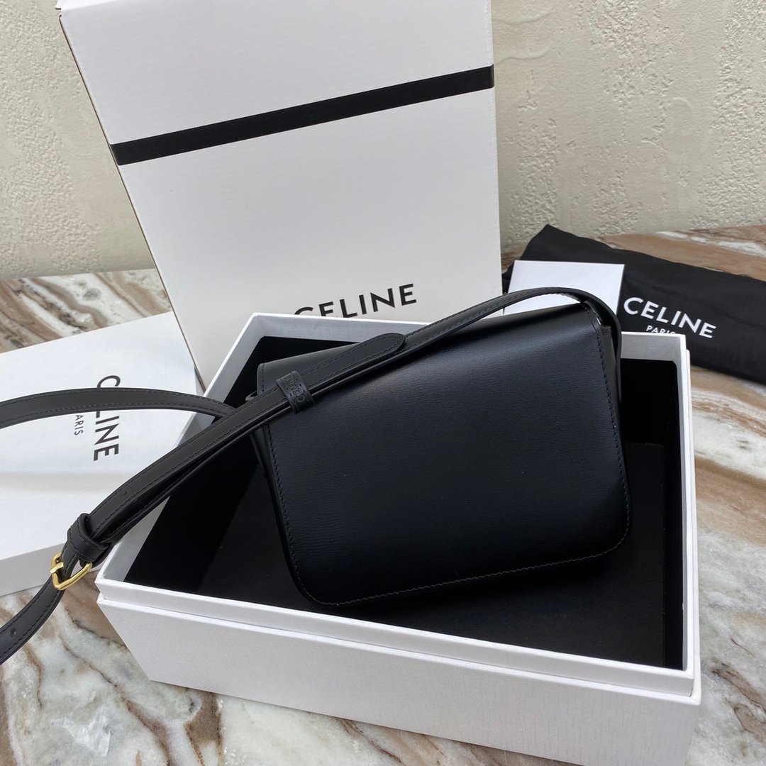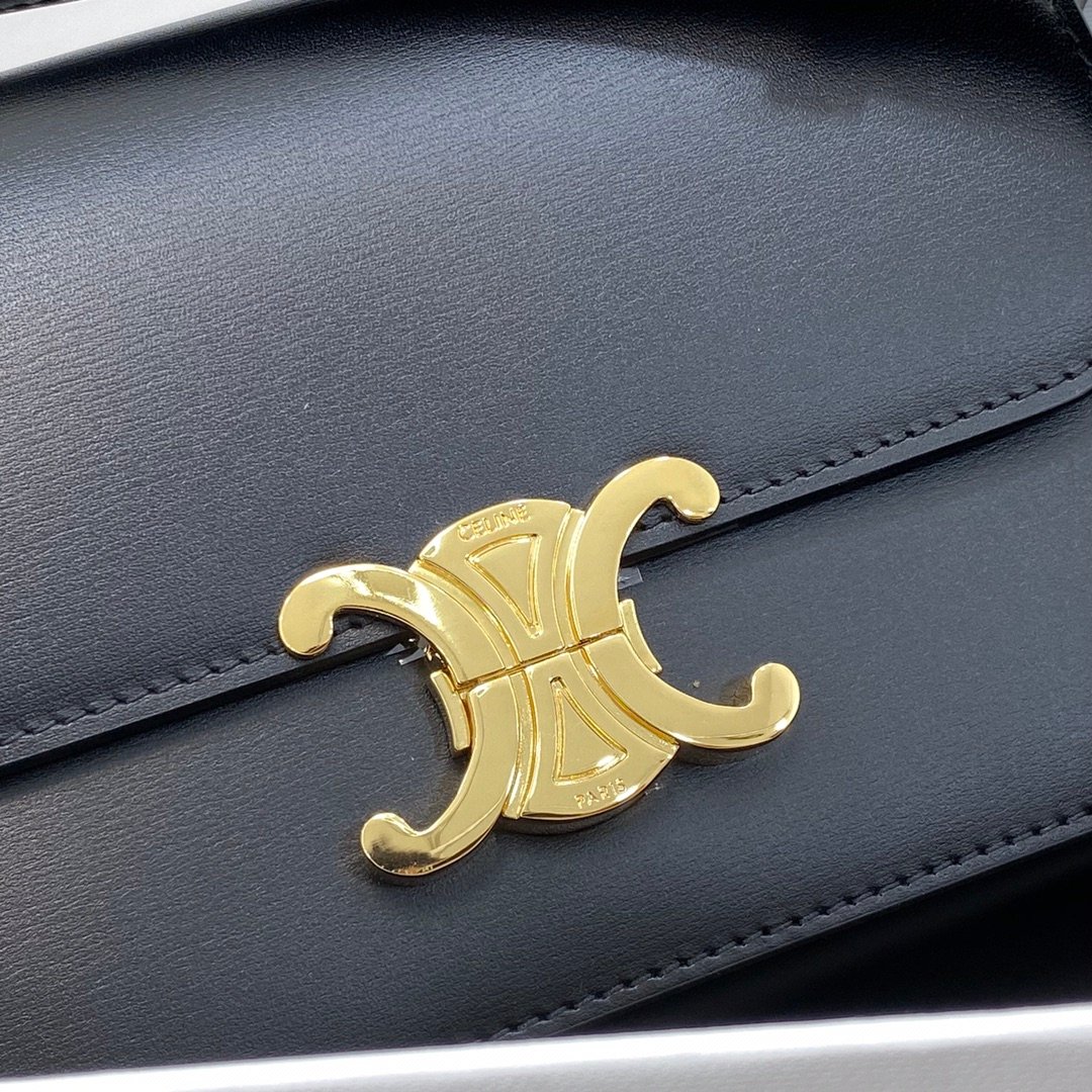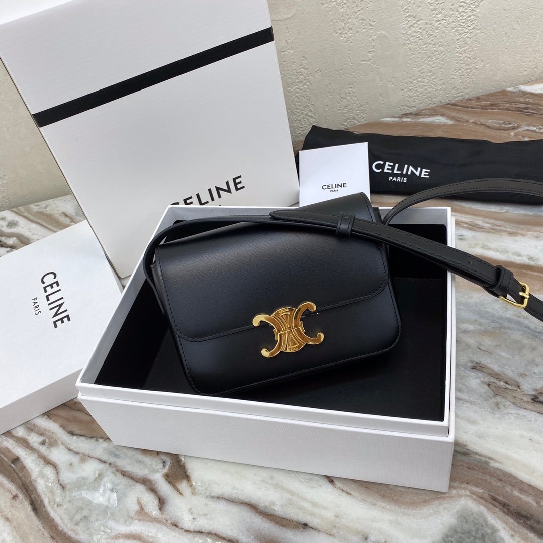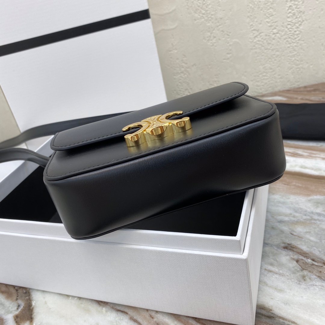Home BAGS CELINE TRIOMPHE NANO (EXTRA SMALL) SHINY CALF LEATHER HANDBAG n6 X 5 X 2 INCHES (16.5 X 11.5 X 5 cm)n100% Calfskin leathern100% Lambskin leather liningnGolden metallic piecesnCrossbody and shoulder carrynTRIOMPHE Metallic textured locking claspnInterior flat pocketsnAdjustable Leather Shoulder Strap length 19 inches (49 cm)nNo. : 191903bf4.24rs i780