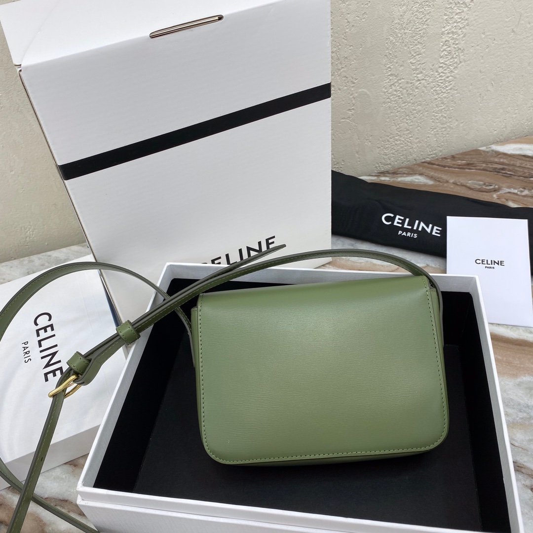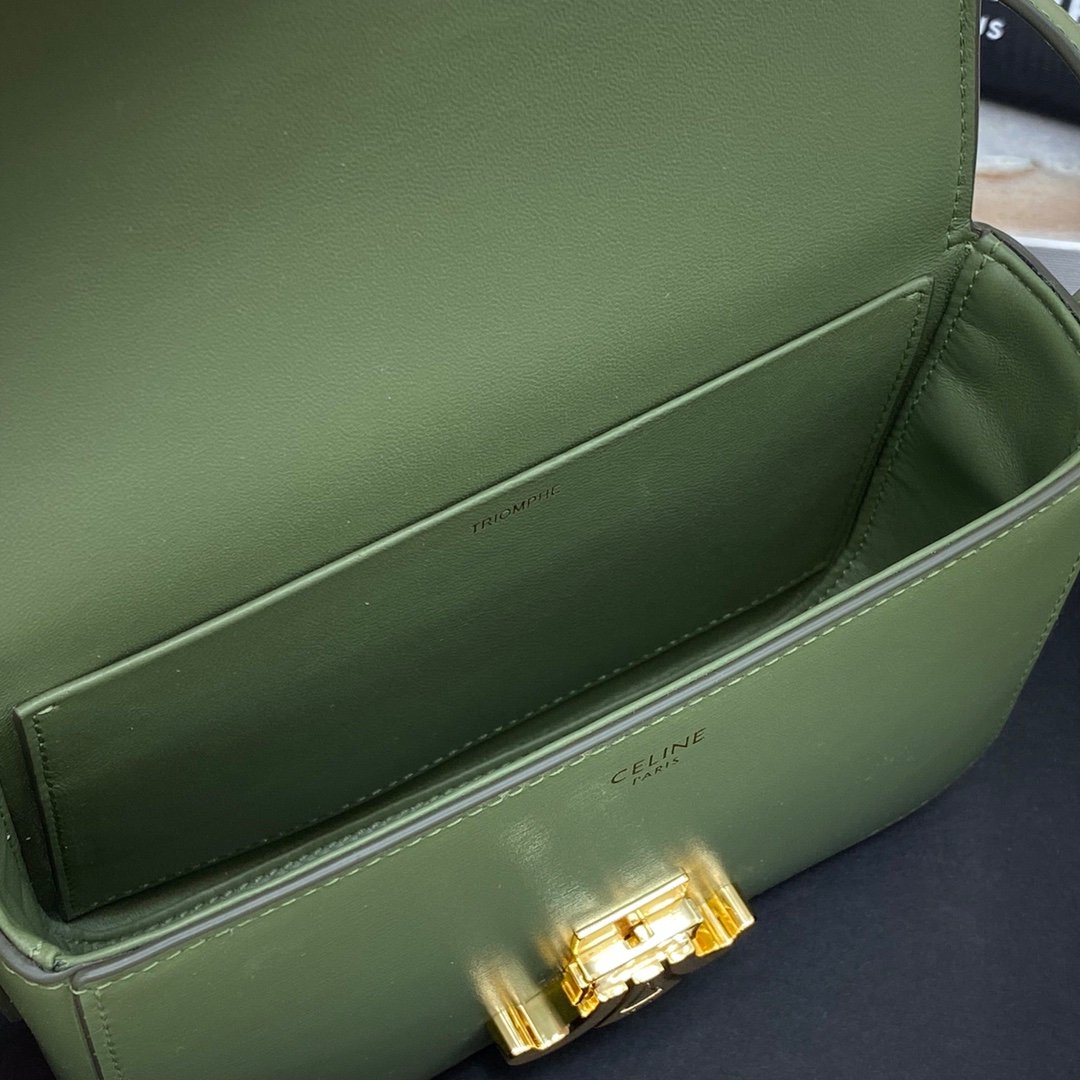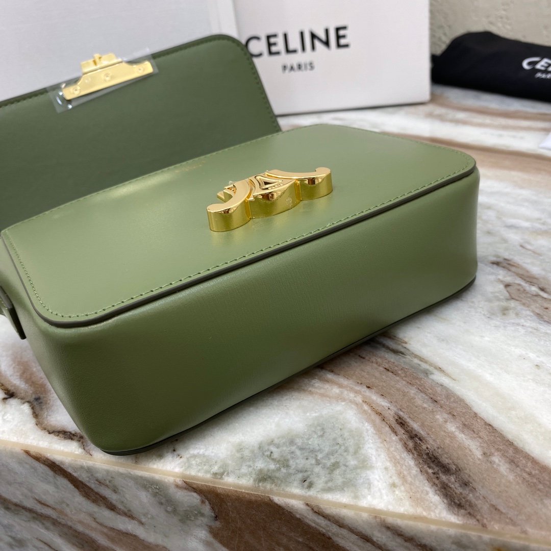 Home BAGS CELINE TRIOMPHE NANO (EXTRA SMALL) SHINY CALF LEATHER HANDBAG n6 X 5 X 2 INCHES (16.5 X 11.5 X 5 cm)n100% Calfskin leathern100% Lambskin leather liningnGolden metallic piecesnCrossbody and shoulder carrynTRIOMPHE Metallic textured locking claspnInterior flat pocketsnAdjustable Leather Shoulder Strap length 19 inches (49 cm)nNo. : 191903bf4.24rs i780