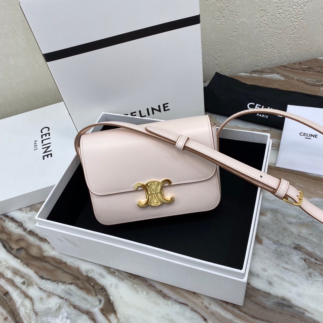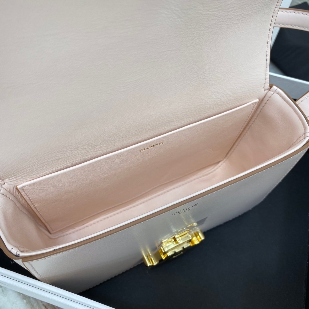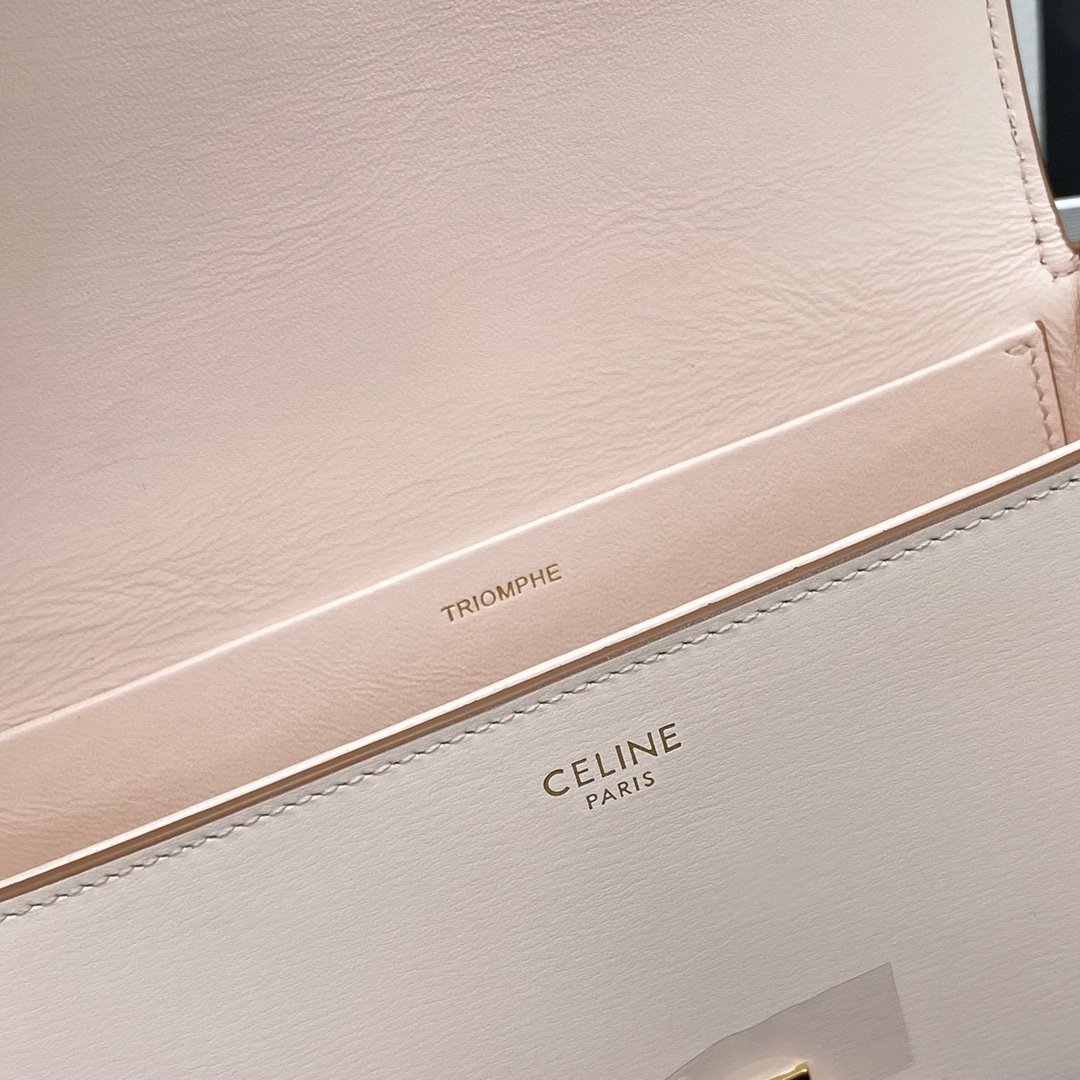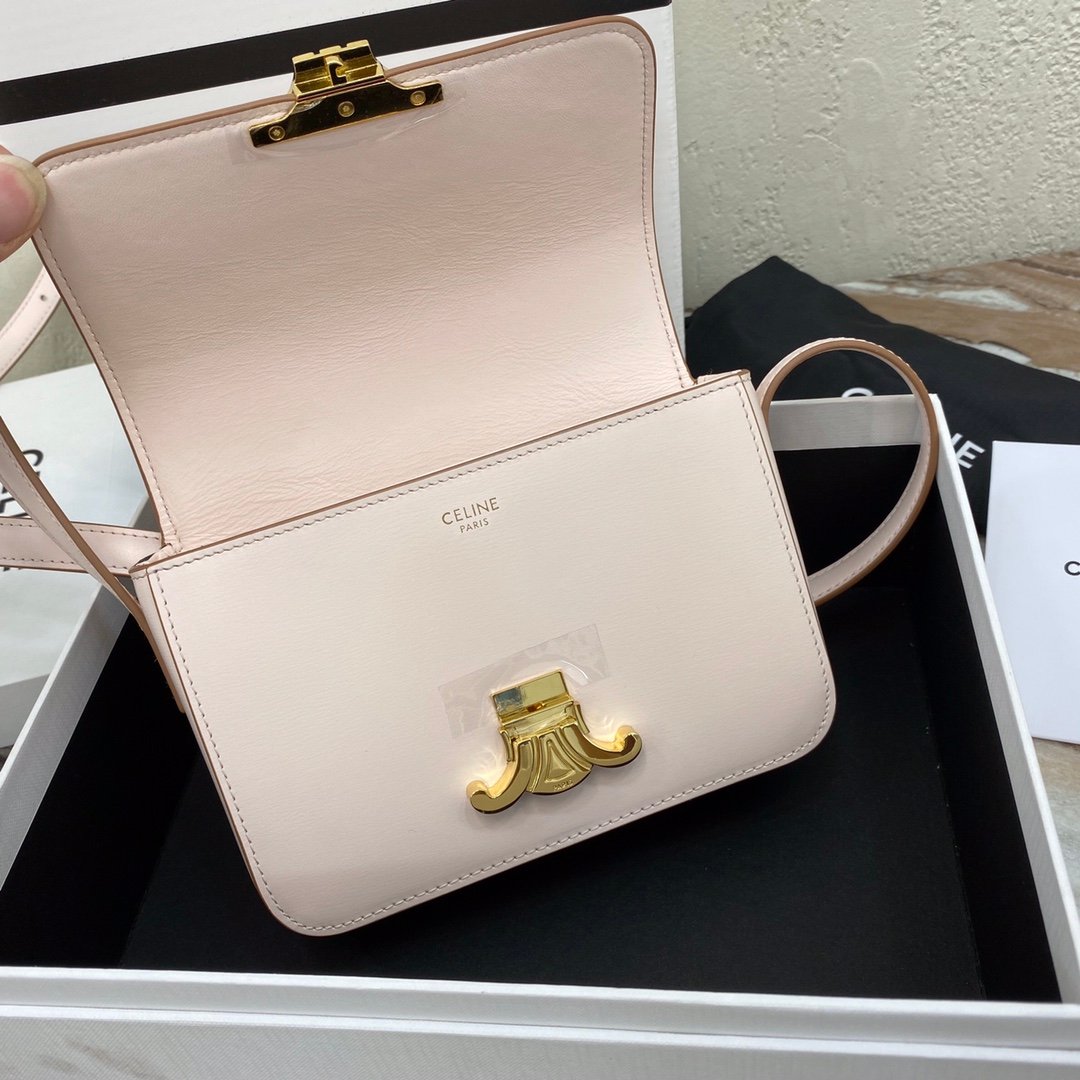 Home BAGS CELINE TRIOMPHE NANO (EXTRA SMALL) SHINY CALF LEATHER HANDBAG n6 X 5 X 2 INCHES (16.5 X 11.5 X 5 cm)n100% Calfskin leathern100% Lambskin leather liningnGolden metallic piecesnCrossbody and shoulder carrynTRIOMPHE Metallic textured locking claspnInterior flat pocketsnAdjustable Leather Shoulder Strap length 19 inches (49 cm)nNo. : 191903bf4.24rs i780