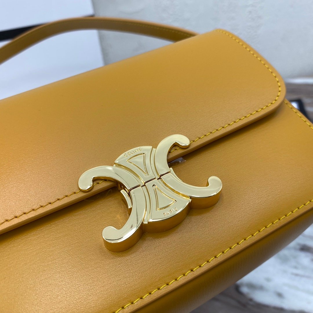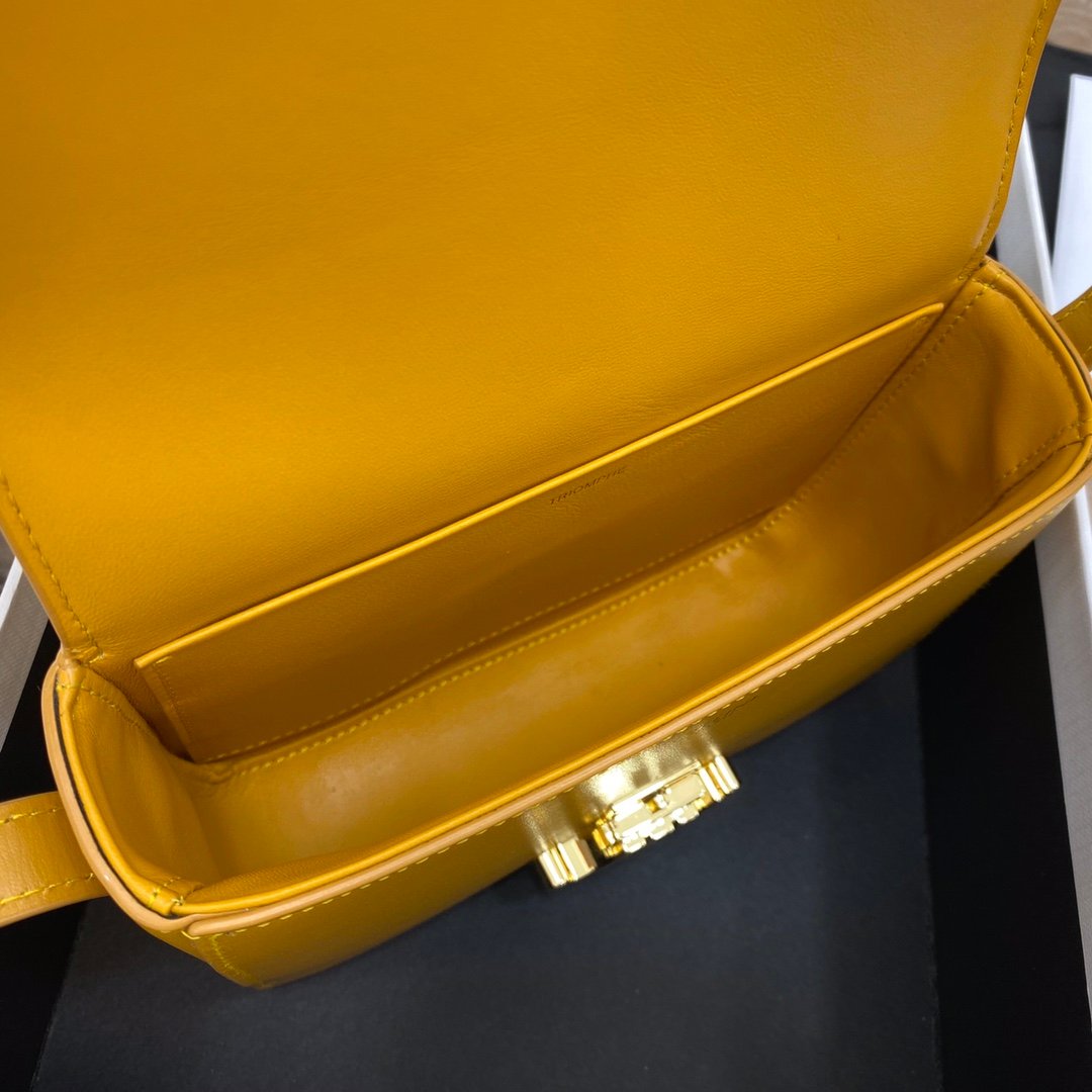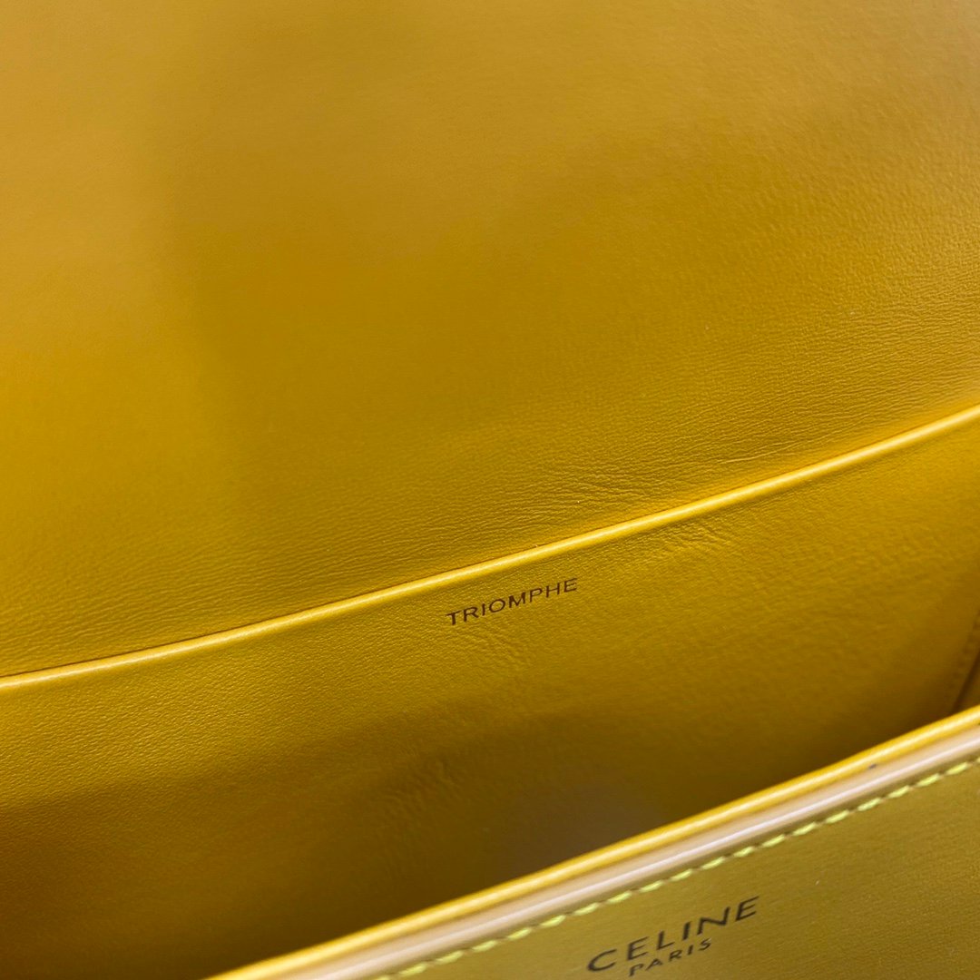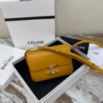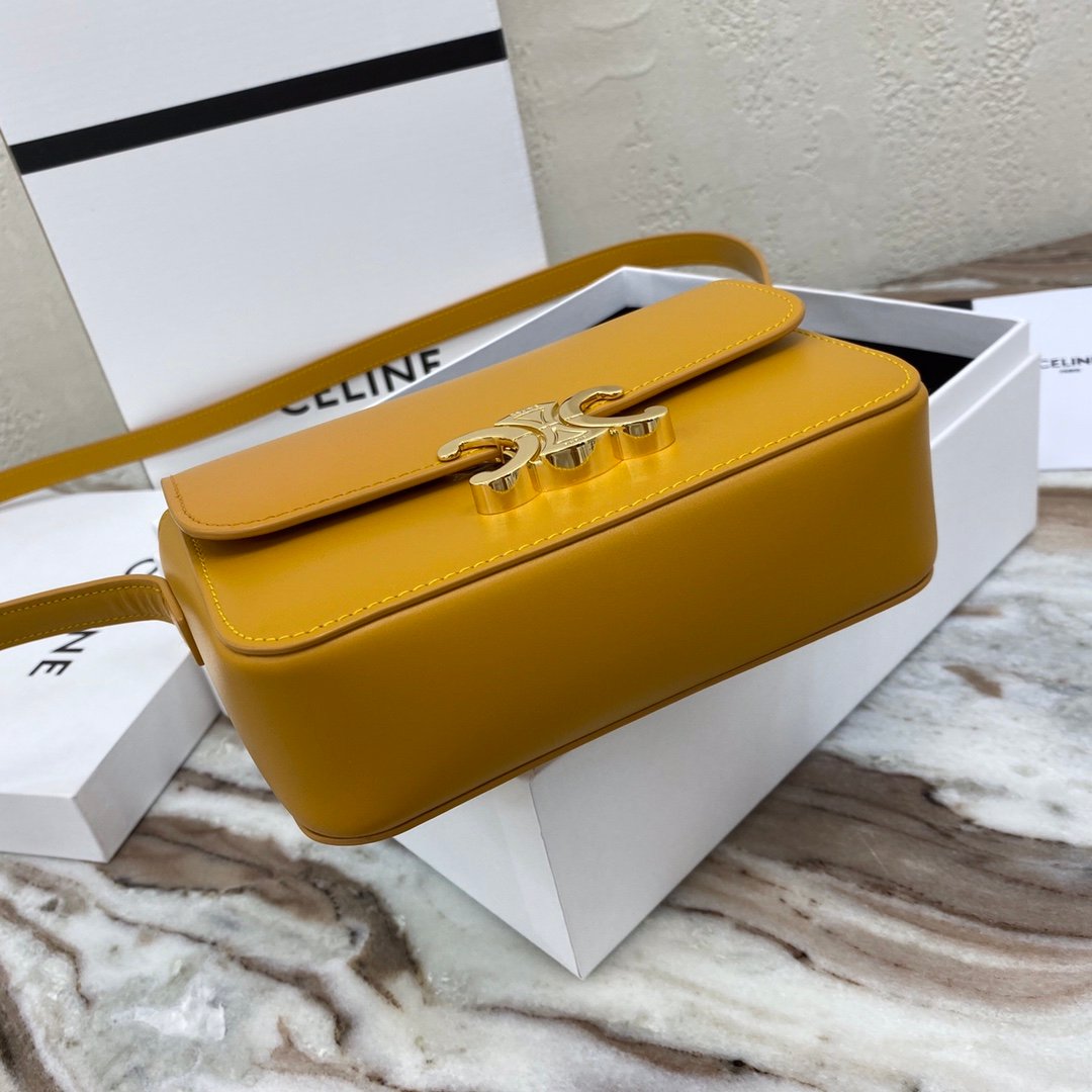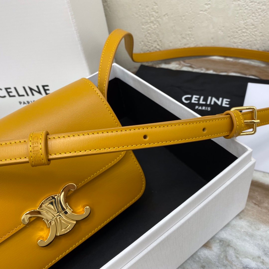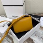 Home BAGS CELINE TRIOMPHE NANO (EXTRA SMALL) SHINY CALF LEATHER HANDBAG n6 X 5 X 2 INCHES (16.5 X 11.5 X 5 cm)n100% Calfskin leathern100% Lambskin leather liningnGolden metallic piecesnCrossbody and shoulder carrynTRIOMPHE Metallic textured locking claspnInterior flat pocketsnAdjustable Leather Shoulder Strap length 19 inches (49 cm)nNo. : 191903bf4.24rs i780