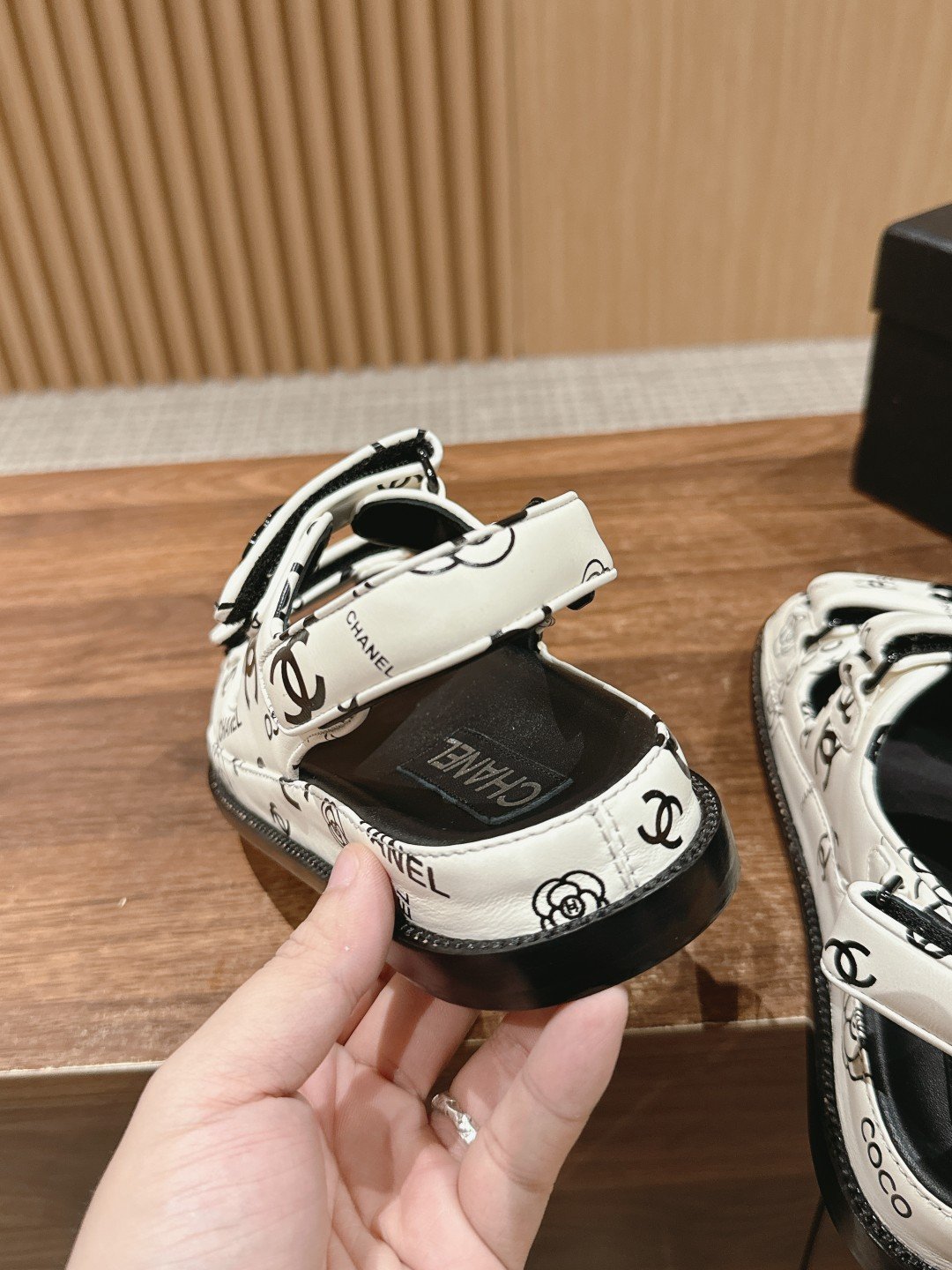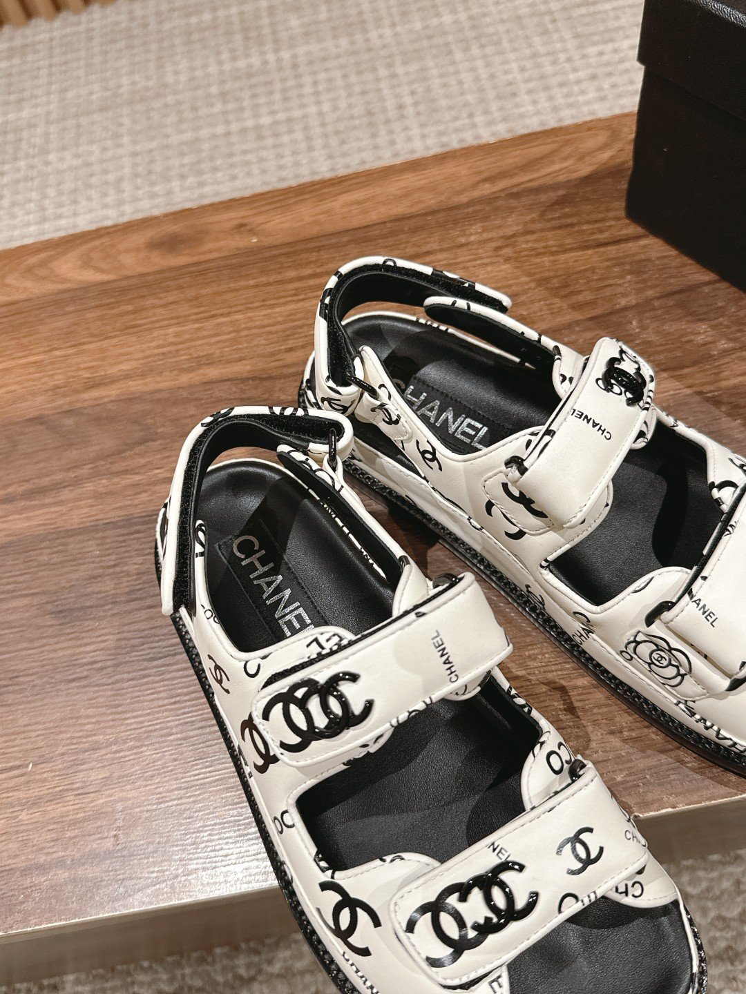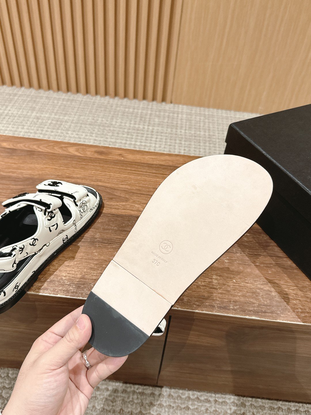 [Upgraded] 𝐂𝐇𝐀𝐍𝐄𝐋 Chanel Classic Velcro Beach Sandals n🔥 Every year, Grandma Chanel’s classic Velcro series of hot items will always appear! The blingbling velcro are all sparkling, classic double 𝐂 accessorized design, a treasure sandal worth getting! nnExcellent craftsmanship, customized original lambskin, cowhide sheepskin Sheepskin Special materials Cowboys Tweed, nThree-layer handmade leather outsole imported from Italy Genuine leather along the stripes edge nnSize: 35-39 (40 customized non-returnable)n
