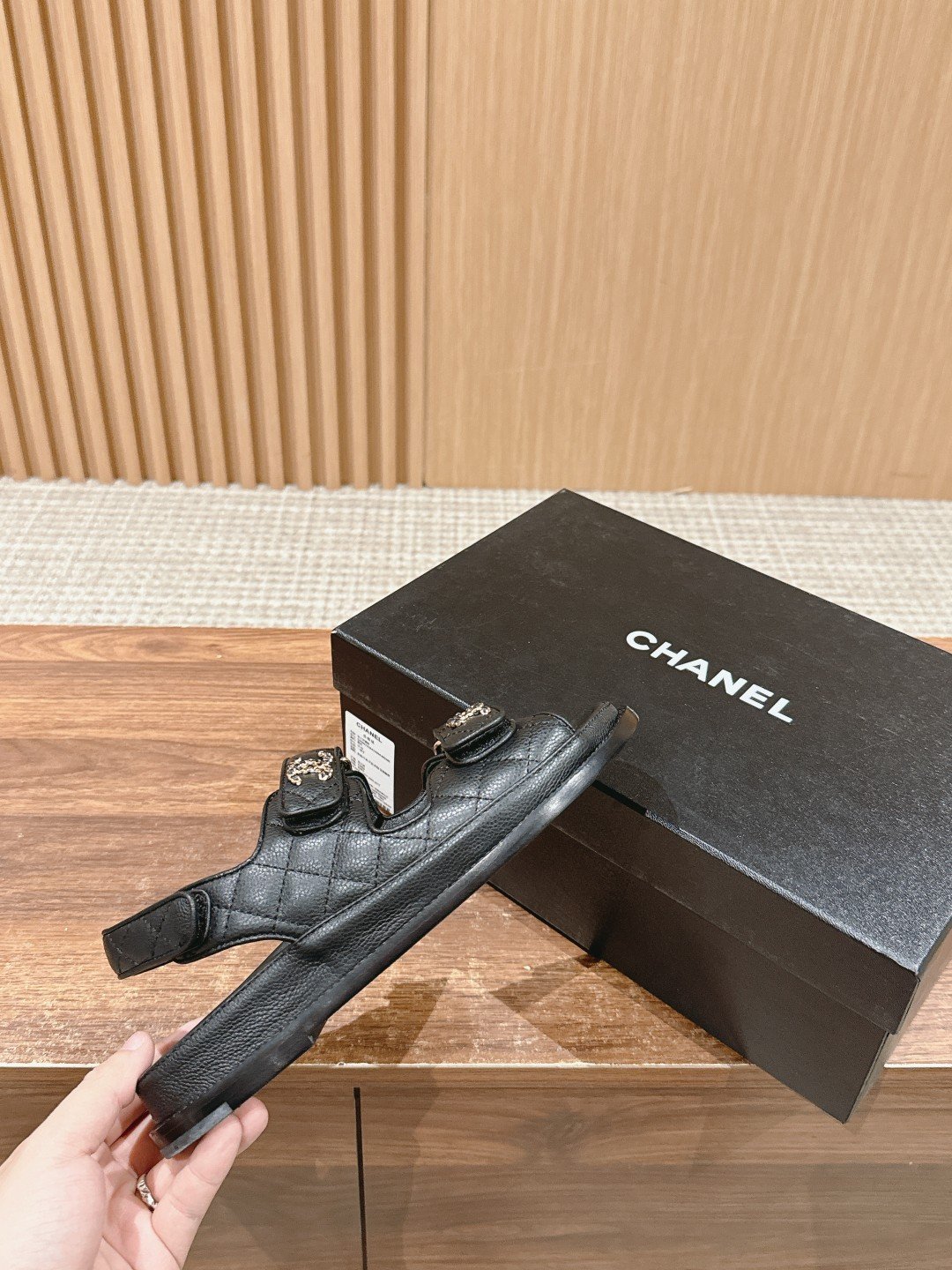 [Upgraded] 𝐂𝐇𝐀𝐍𝐄𝐋 Chanel Classic Velcro Beach Sandals n🔥 Every year, Grandma Chanel’s classic Velcro series of hot items will always appear! The blingbling velcro are all sparkling, classic double 𝐂 accessorized design, a treasure sandal worth getting! nnExcellent craftsmanship, customized original lambskin, cowhide sheepskin Sheepskin Special materials Cowboys Tweed, nThree-layer handmade leather outsole imported from Italy Genuine leather along the stripes edge nnSize: 35-39 (40 customized non-returnable)n