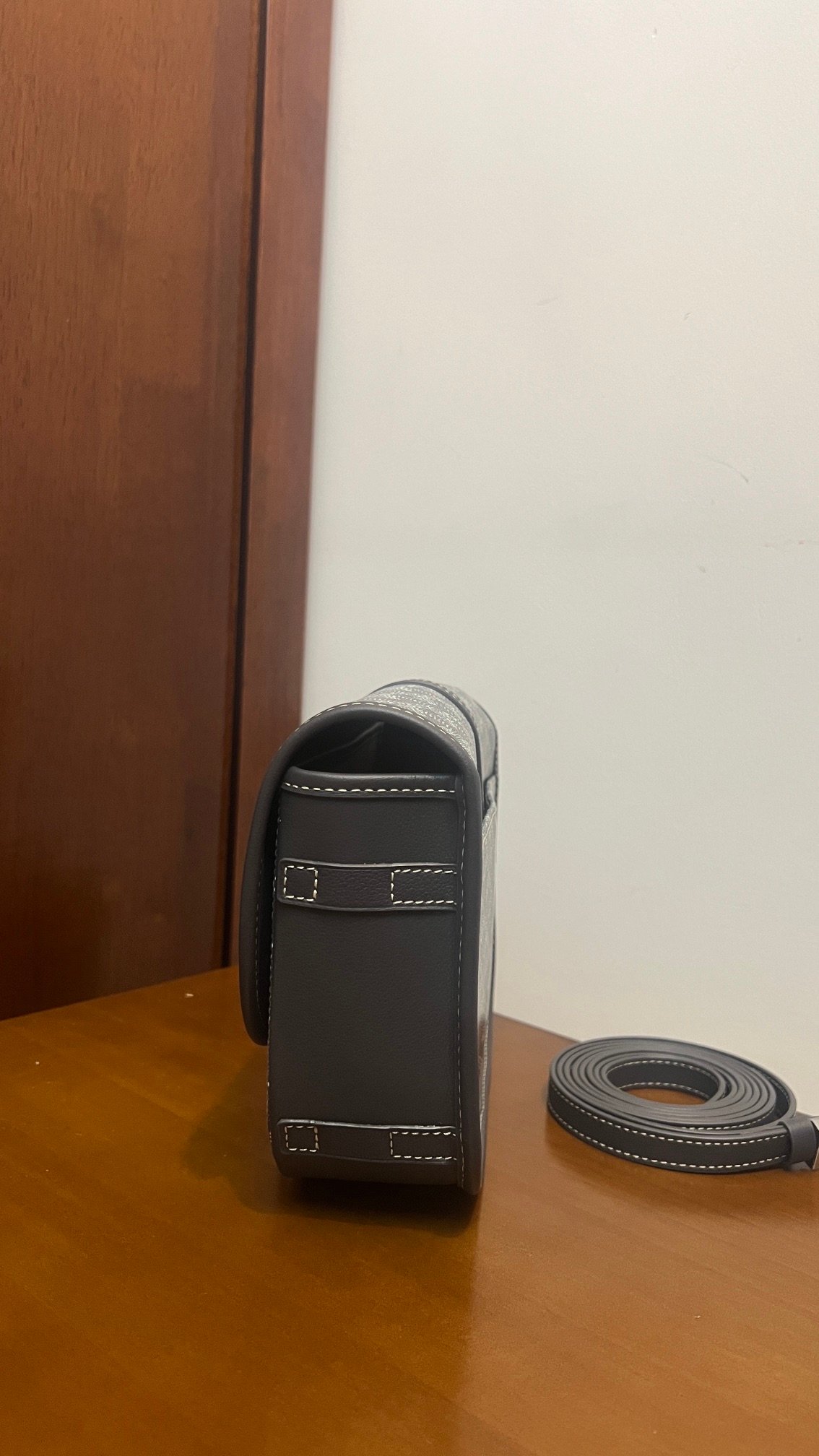Upgraded lychee leathernGOYARD BELVEDERE small bag with dexterous shoulder strap and secure closure system is suitable for all occasions, simple and elegant yet lightweight and practical. Featuring multiple exterior and interior pockets for easy compartmentalization of your belongings. The nBELVEDERE Trumpet Bag reinterprets the small shoulder bag typically used by timber rowers to carry food. Its name derives from the viewpoint that gives a bird’s eye view of the Morvan woodland and Claremont West. nSize, Weight:16X7X22(CM)n●Main & Other Materials:GOYARDINE CANVAS & DECIZE CALF LEATHERn-Interior Material:YELLOW COTTON LINING- EXTERIOR DESCRIPTION: EXTERIOR PATCH POCKETSn-CLOSURE SYSTEM:LEATHER STRAP + METAL RINGSn.Detachable & Adjustable Shoulder Strap:Adjustable Shoulder Strap●Maximum Shoulder Strap Length:53(CM)-Style: Crossbody, Shoulder – Occasion: Traveling alone – Country: France