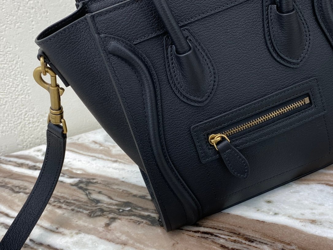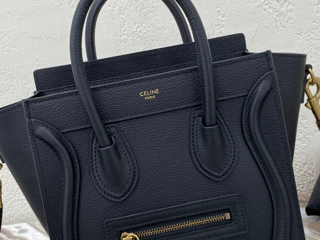 Be the first to review “[Upgraded New Logo] CELINE Classic Smiley Bag 🇮🇹 Overseas Original Water Goods [Small 20CM] LUGGAGE Calfskin Handbag/Crossbody Bag Top with zipper closure. Simple flat pocket inside. Antique gold-colored metal fittings n model 168243 a p850 goat grain” Cancel reply