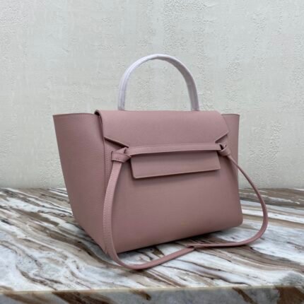 CELINE BELT MINI mini grained calf leather handbag with 1 leather handle, 1 detachable shoulder strap and 1 zipped pocket on the outside back. This handbag features two closure options: top flap and zipper. nSize 11 X 9 X 7 inches (28 X 23 X 17 cm)n100% Calfskin leathern100% Calfskin leather liningnGolden metal hardwarenShoulder or handheldnMagnetic snap top flap closure and top flap lower zipper closurenInterior double flat pocketsnBack exterior flat pocketnDetachable leather shoulder strap 14 inches (36 cm)nTote handle 4 inches (9 cm)n Protective foot studsn No. 175523 p1050