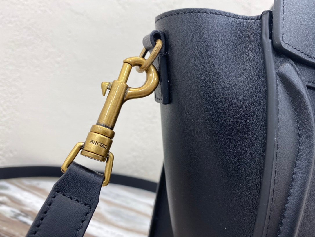 [Upgraded New Logo] CELINE Classic Smiley Bag Flat 🇮🇹 Overseas Original Single Water Goods [Small 20CM] LUGGAGE Calfskin Handbag/Crossbody Bag Top with zipper closure. Simple flat pocket inside. Antique gold-colored metal fittings