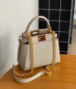 Peekaboo Xs small handbag system, handbag, irreplaceable classic temperament, young fashion versatile, small bag with large capacity, star netroots with the same models, recommended, original price of 2W +, take inside and outside the washed lambskin, super fine, soft, breathable and comfortable. There are each two compartments, the center is separated by a rigid plate. Twist lock on both sides. Single handle and lining. Adjustable and removable chain shoulder strap, can be carried over the shoulder or diagonally. Size 19*8.5*15.5cm ๐๐309 sheepskin