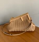 FENDI First woven cloud bag, tilted letter F into a soft handbag frame, handbag design is unique and subtle, the material includes soft sheepskin weaving, small 26cm. each handbag is equipped with a removable adjustable shoulder strap, can be cross-body, in addition to the good looks of the bag, there is a lot of space, very practical, this year, will be a red bag