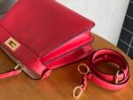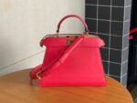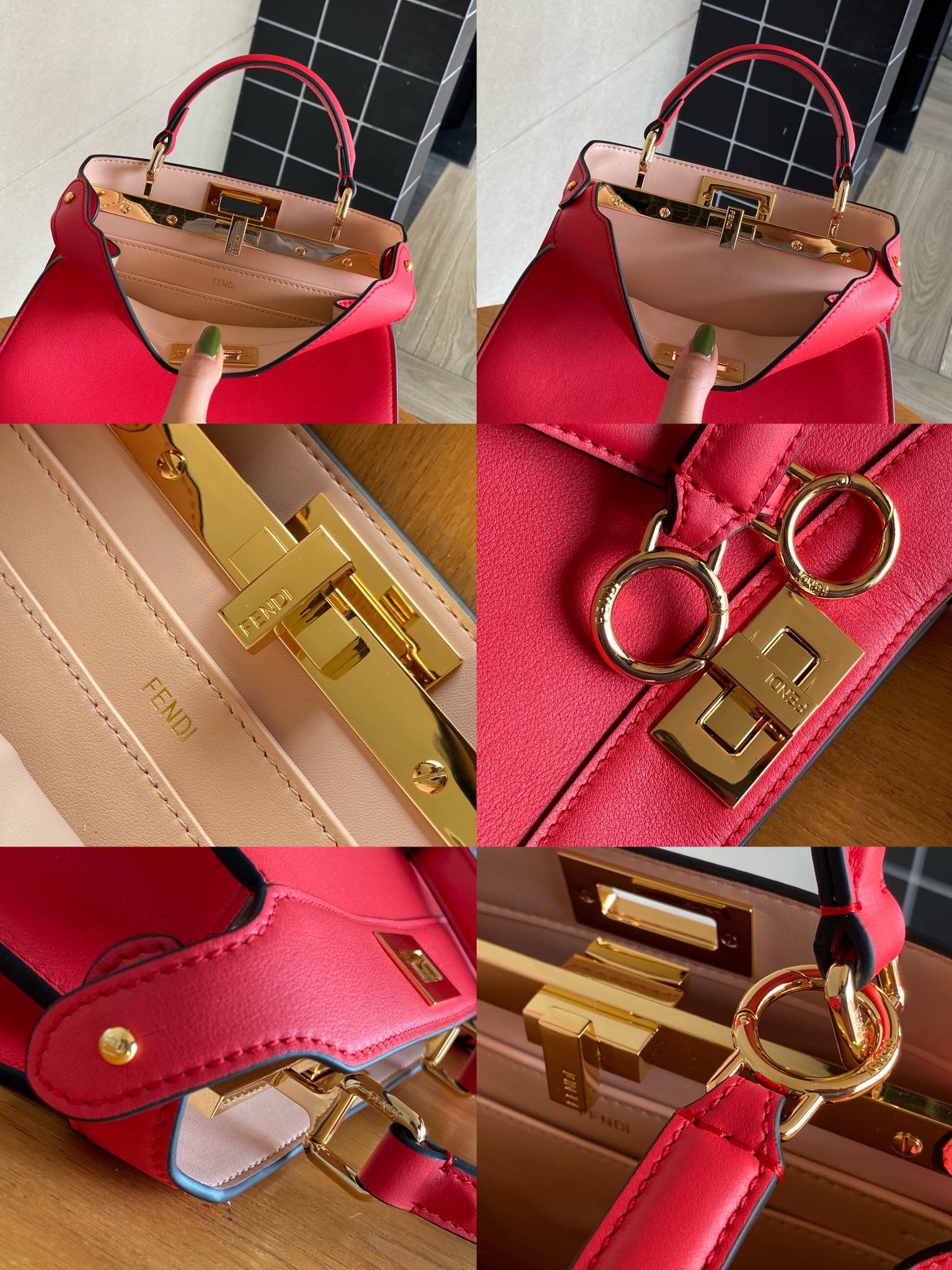 FEND1PeekabooISeeU medium handbag in calfskin leather, embellished with classic twist locks on both sides, soft nappa leather lining, two compartments separated by a rigid divider, with buttoned internal pockets and gold-tone metal parts. The bag comes with handles and an adjustable, detachable shoulder strap with a tortoiseshell buckle, a sophisticated and durable bag