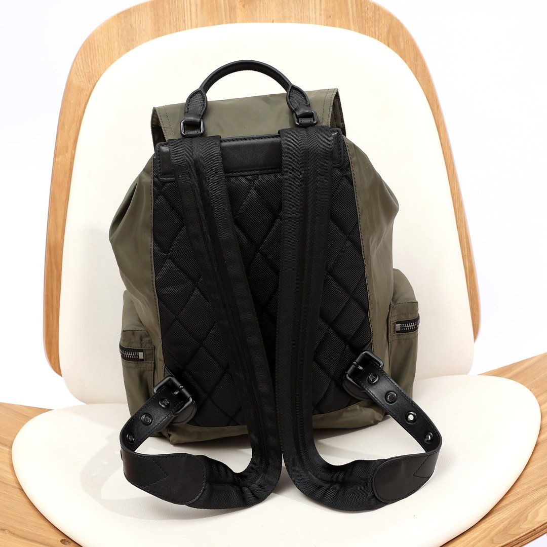 Men's military backpack is now shipping! Based on the brand's iconic military style bag, the military backpack is crafted from smooth cotton canvas fabric and adorned with stitching leather trim and Burberry letter logo (28x42) 👍311468