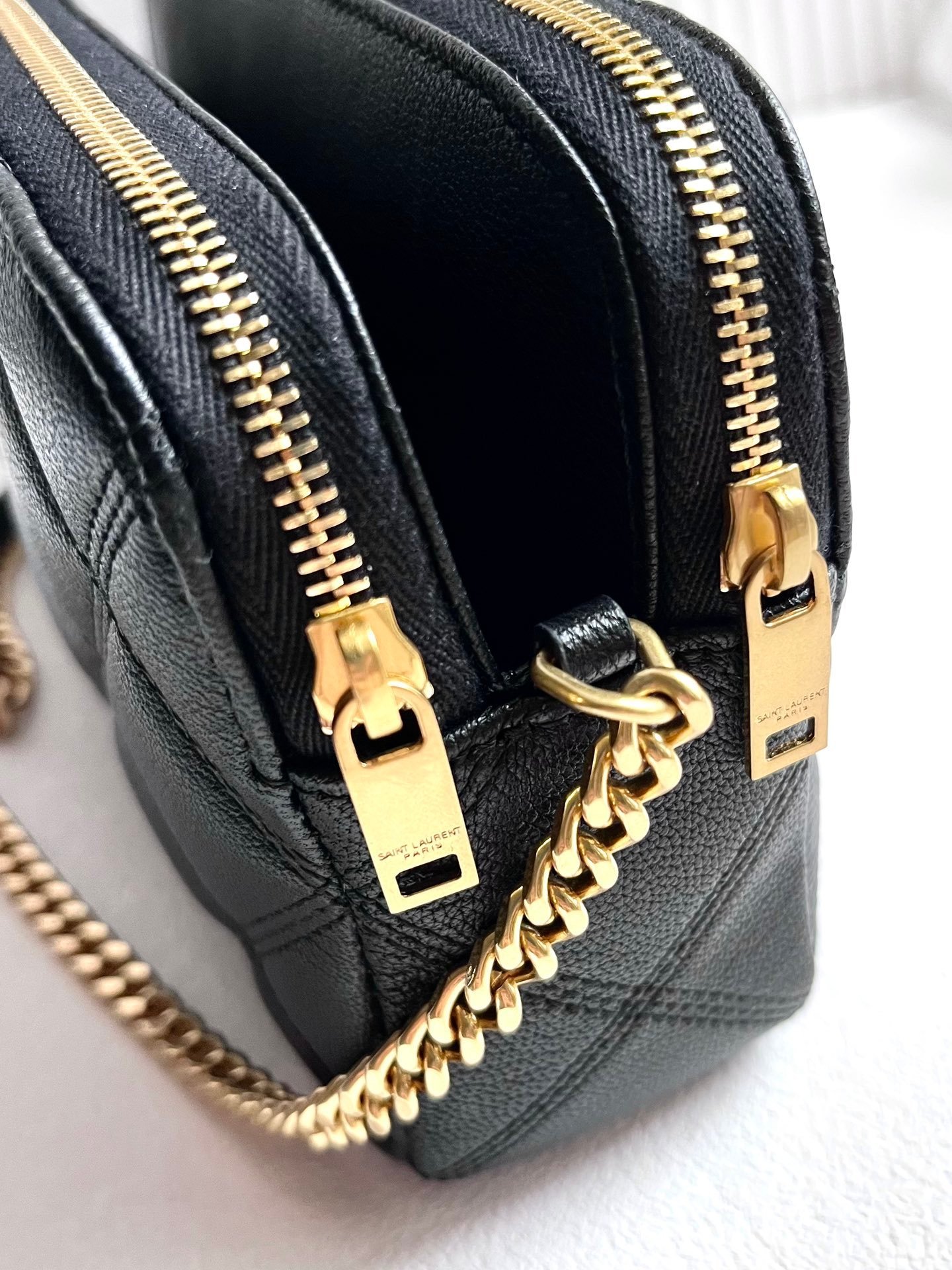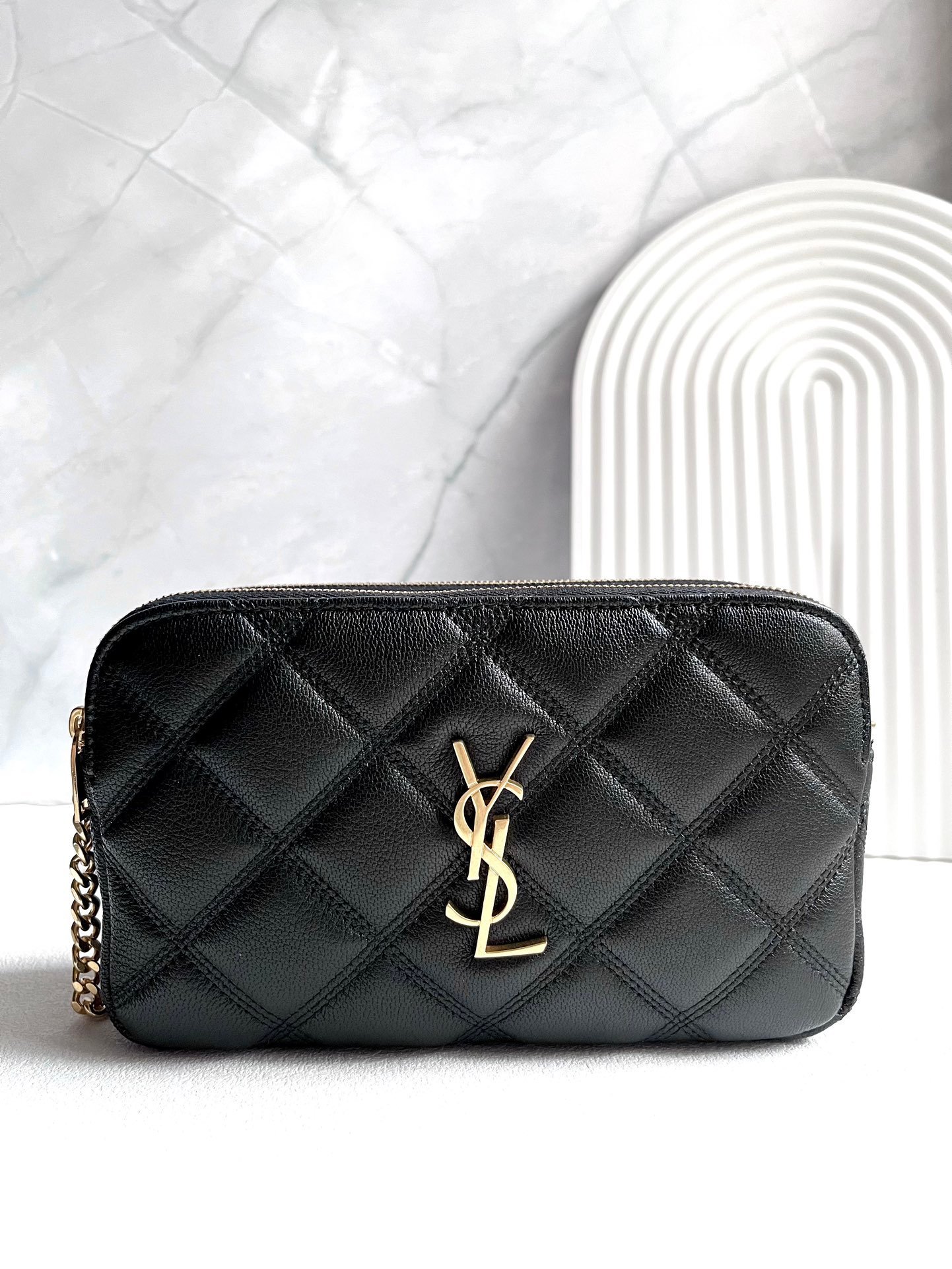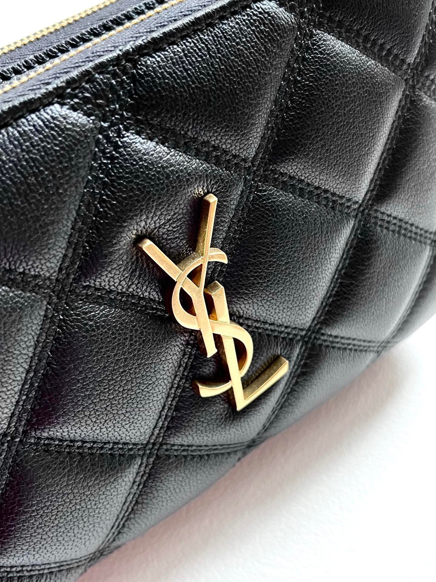 YSL BECKY rhombus double zipper original leather black large goods real shot