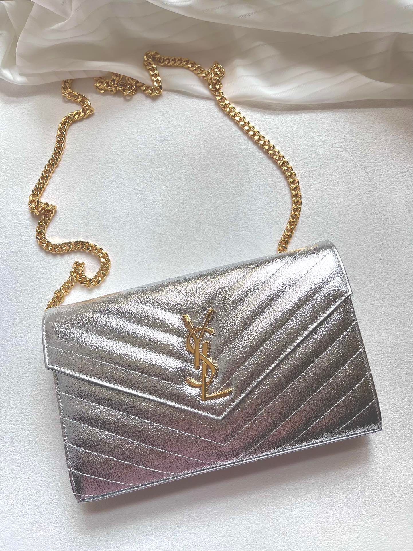 ysl envelope bag woc silver large large goods real shot 🧊