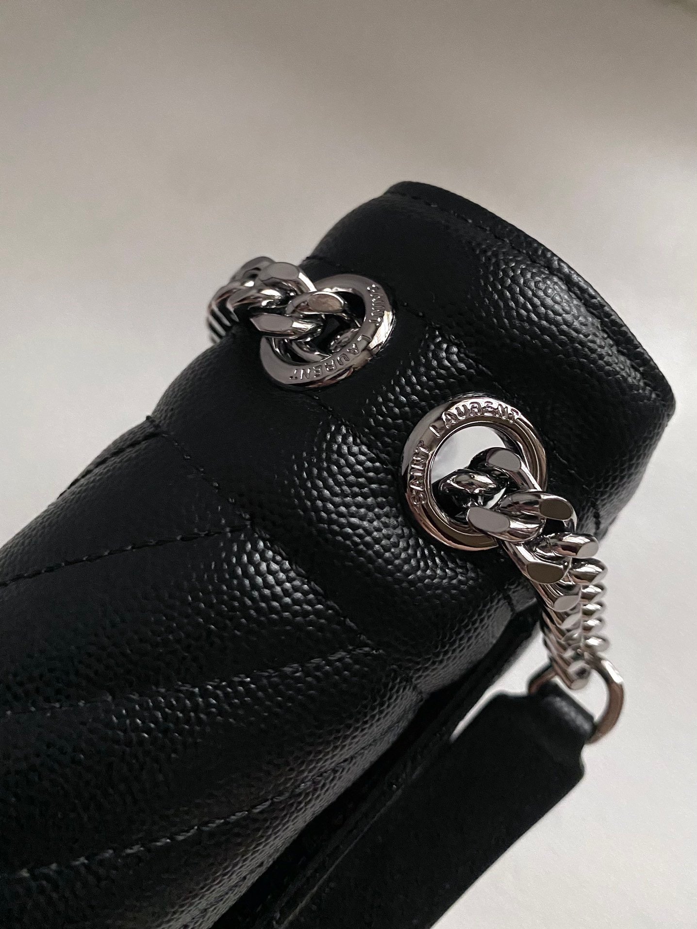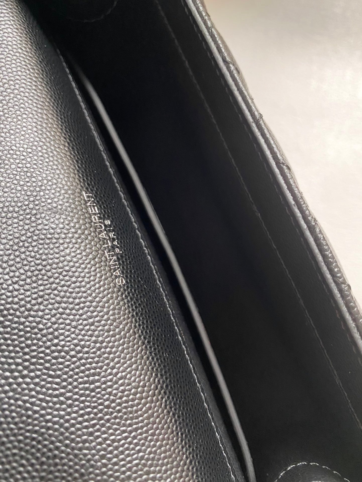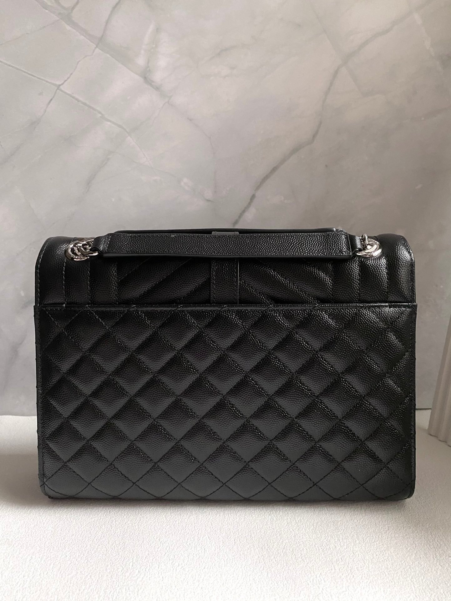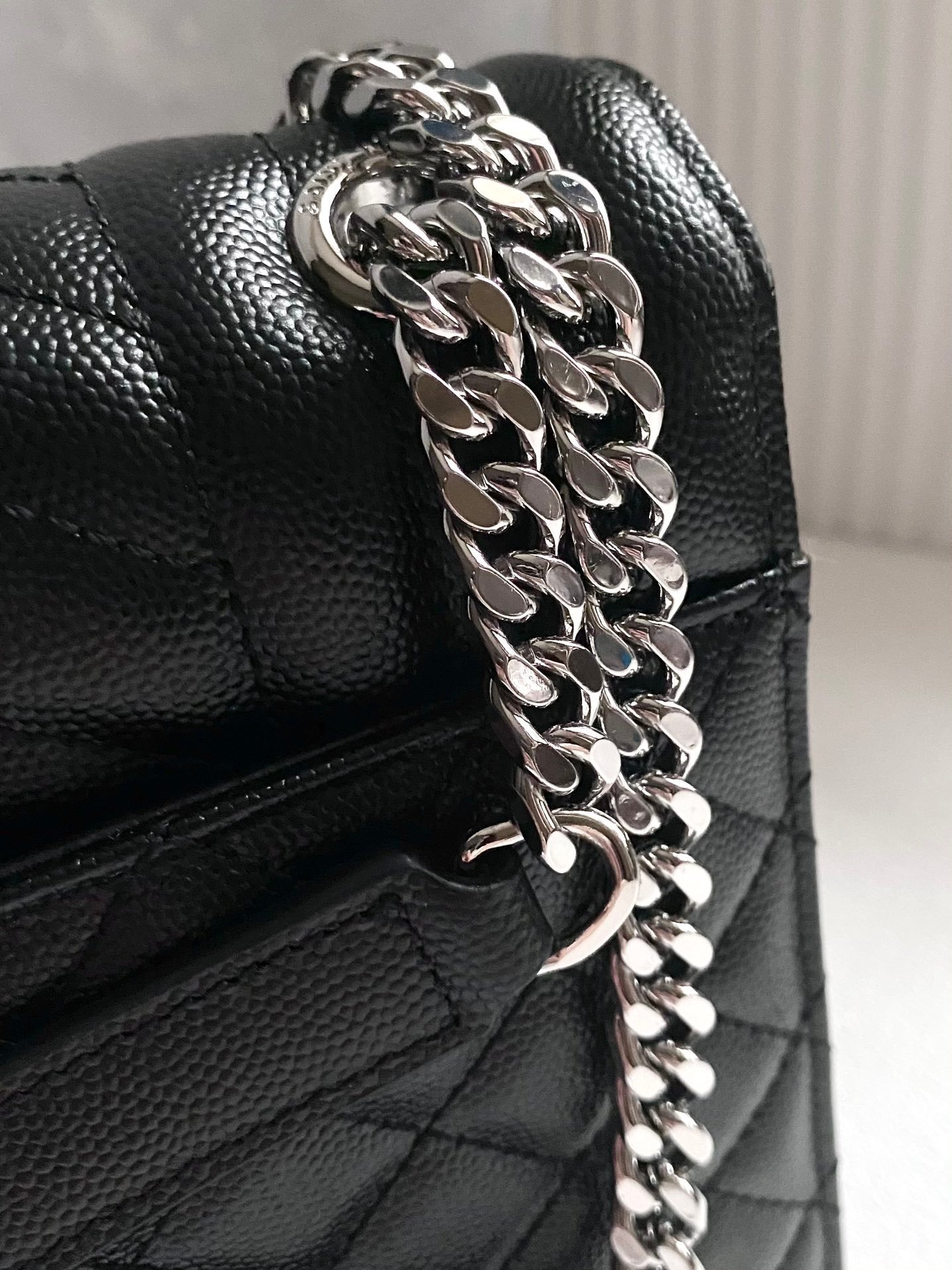 YSL Envelope Envelope Bag Original Leather Black and Silver Medium Large Goods real shot