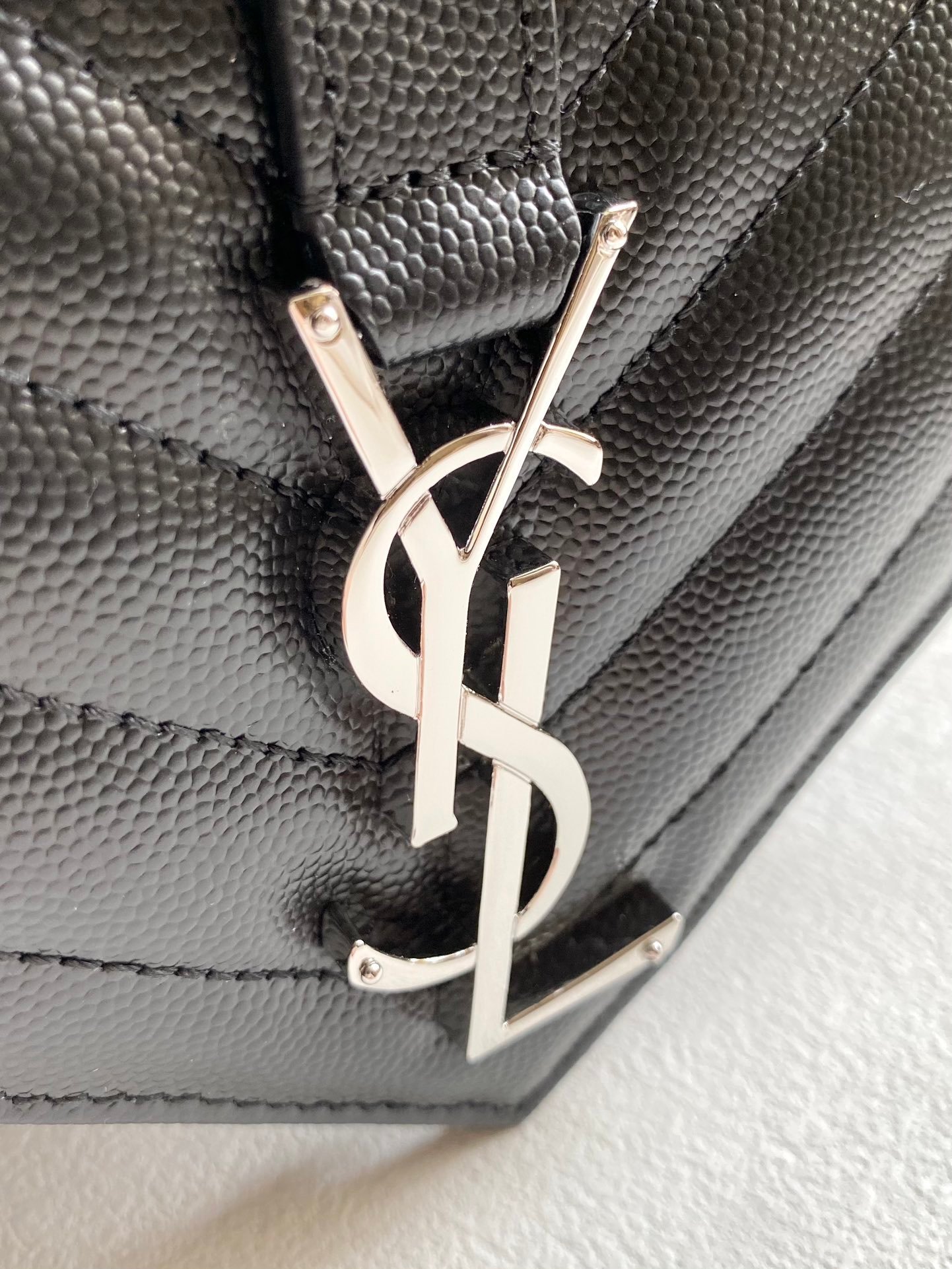 YSL Envelope Envelope Bag Original Leather Black and Silver Small Large Goods real shot