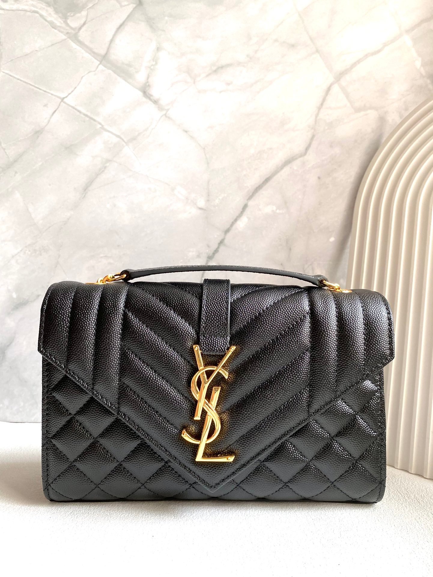 YSL Envelope Envelope Bag Original Leather Black Gold Small Large Goods Real Shots
