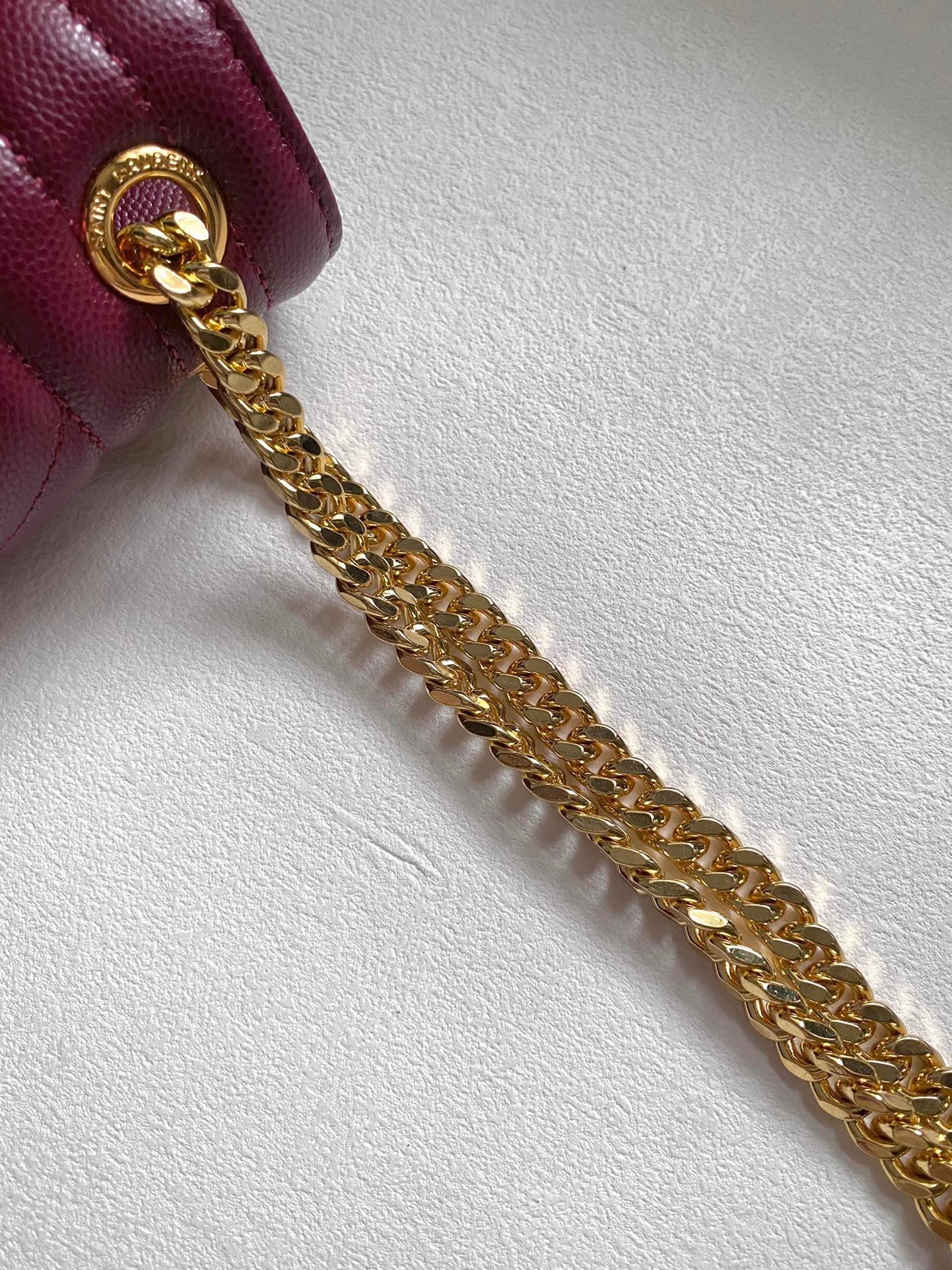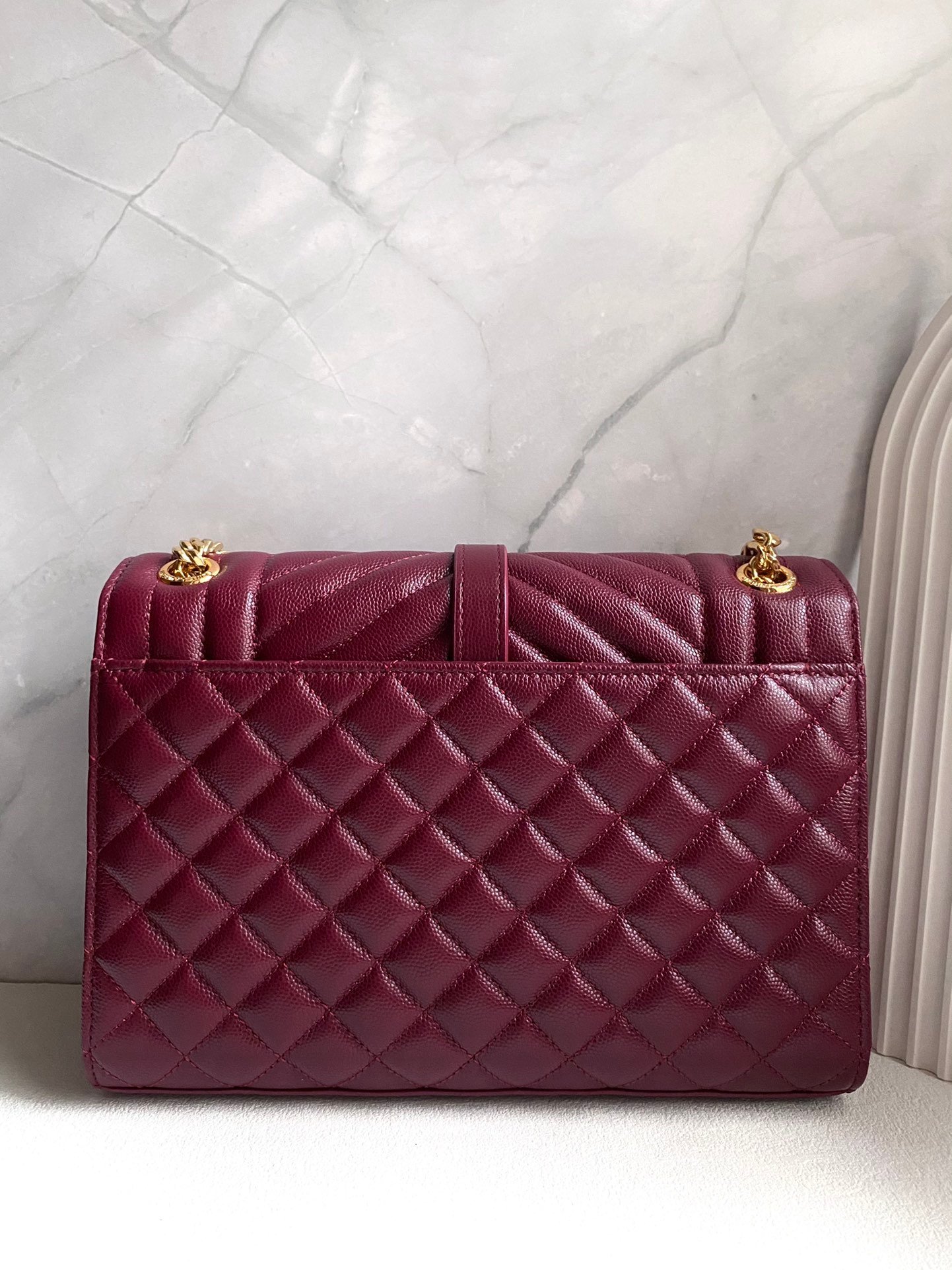 YSL Envelope Envelope Bag Original Leather Date Red Medium Large Goods real shot