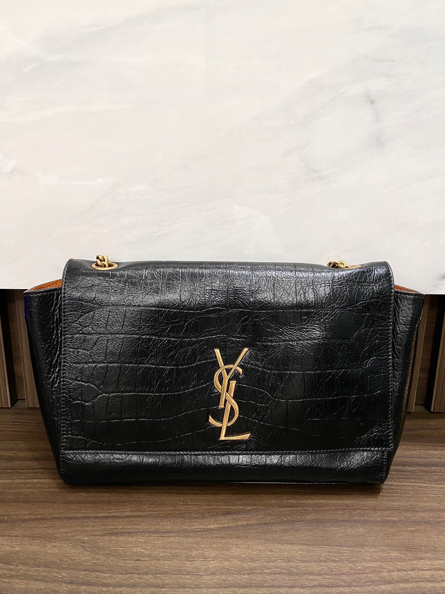 YSL Kate Reversible Crocodile Print Black Medium Large Goods Real Shots