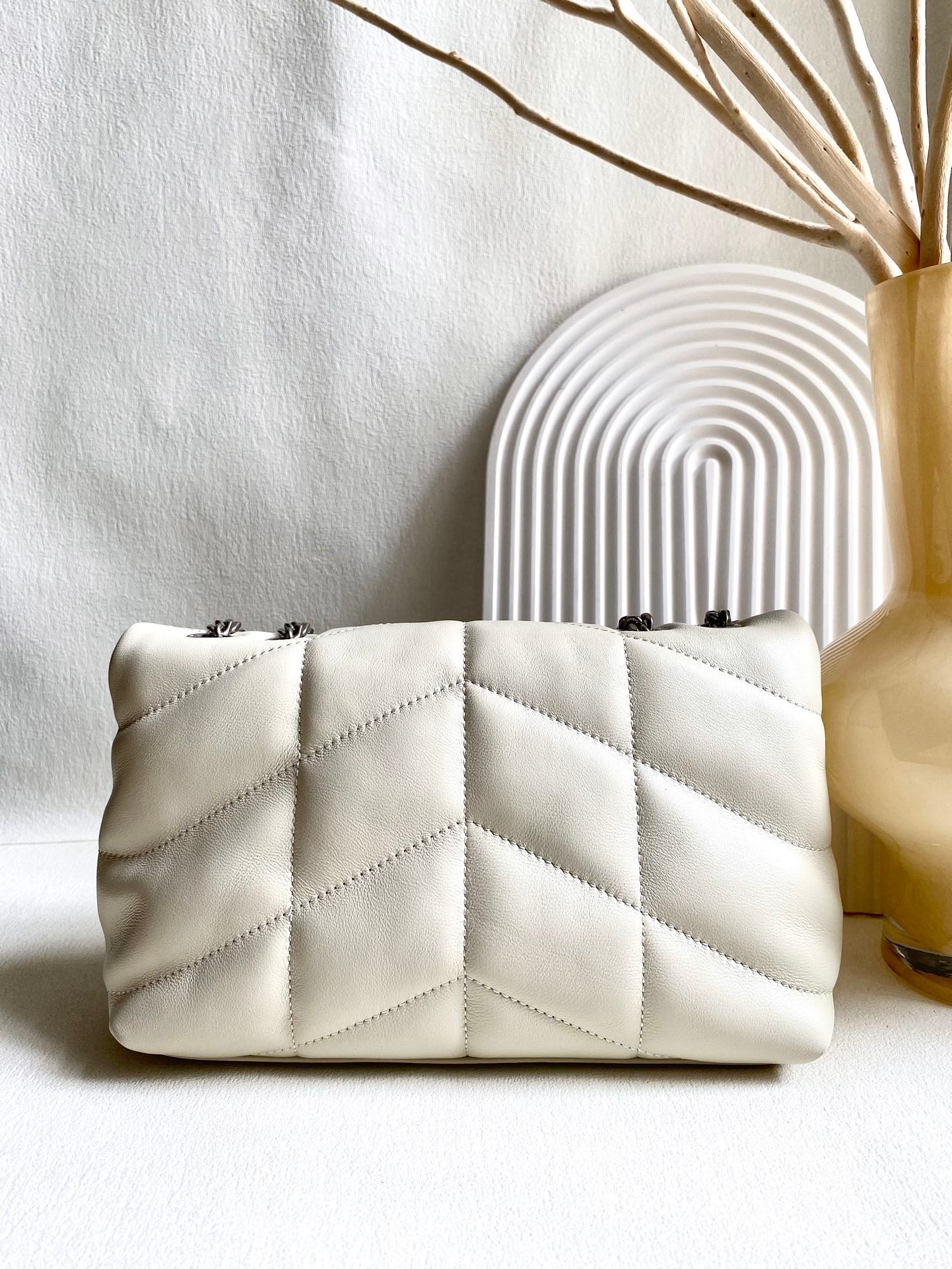 YSL Loulou new version of the double chain white silver mini large goods real shot