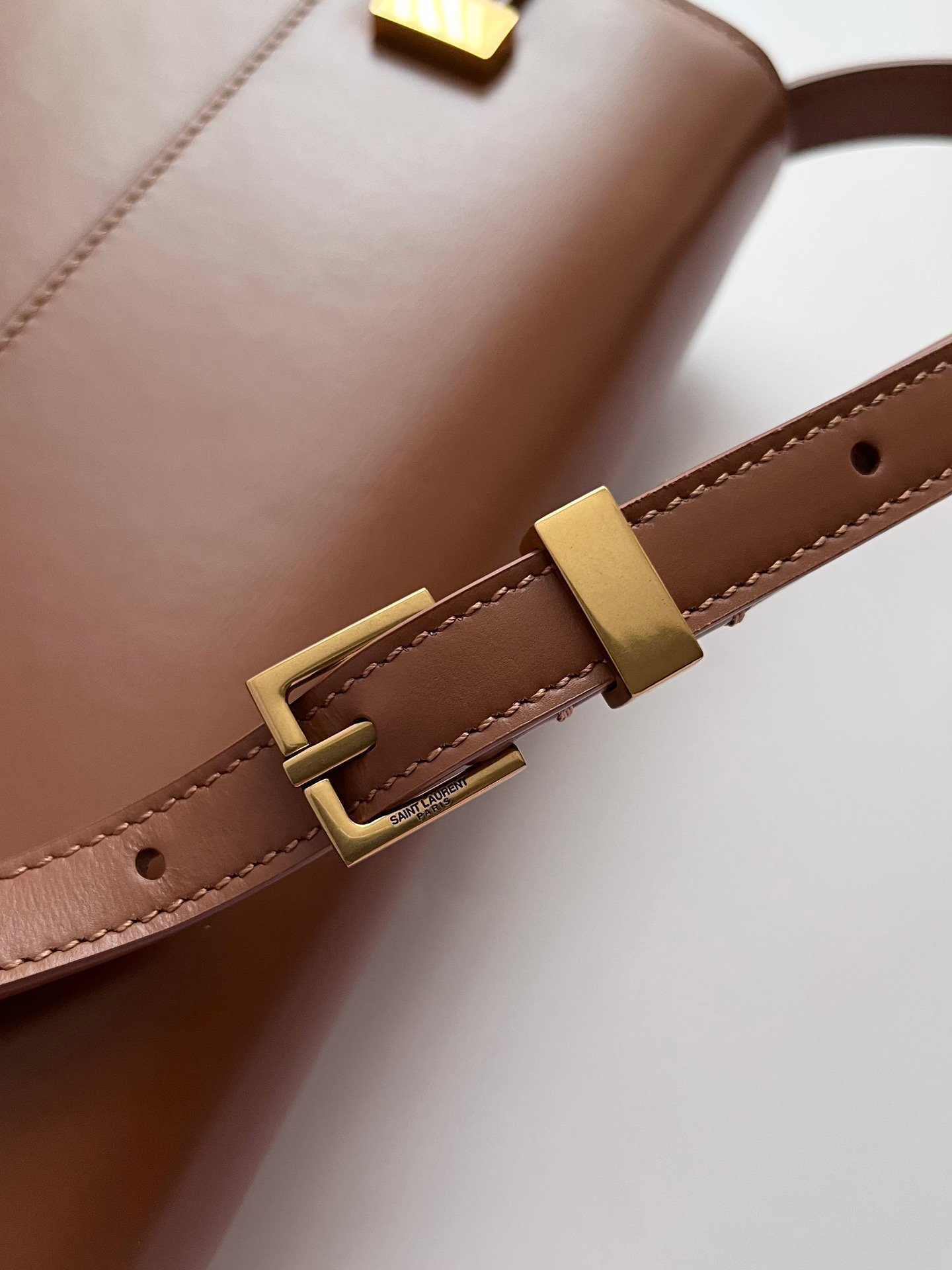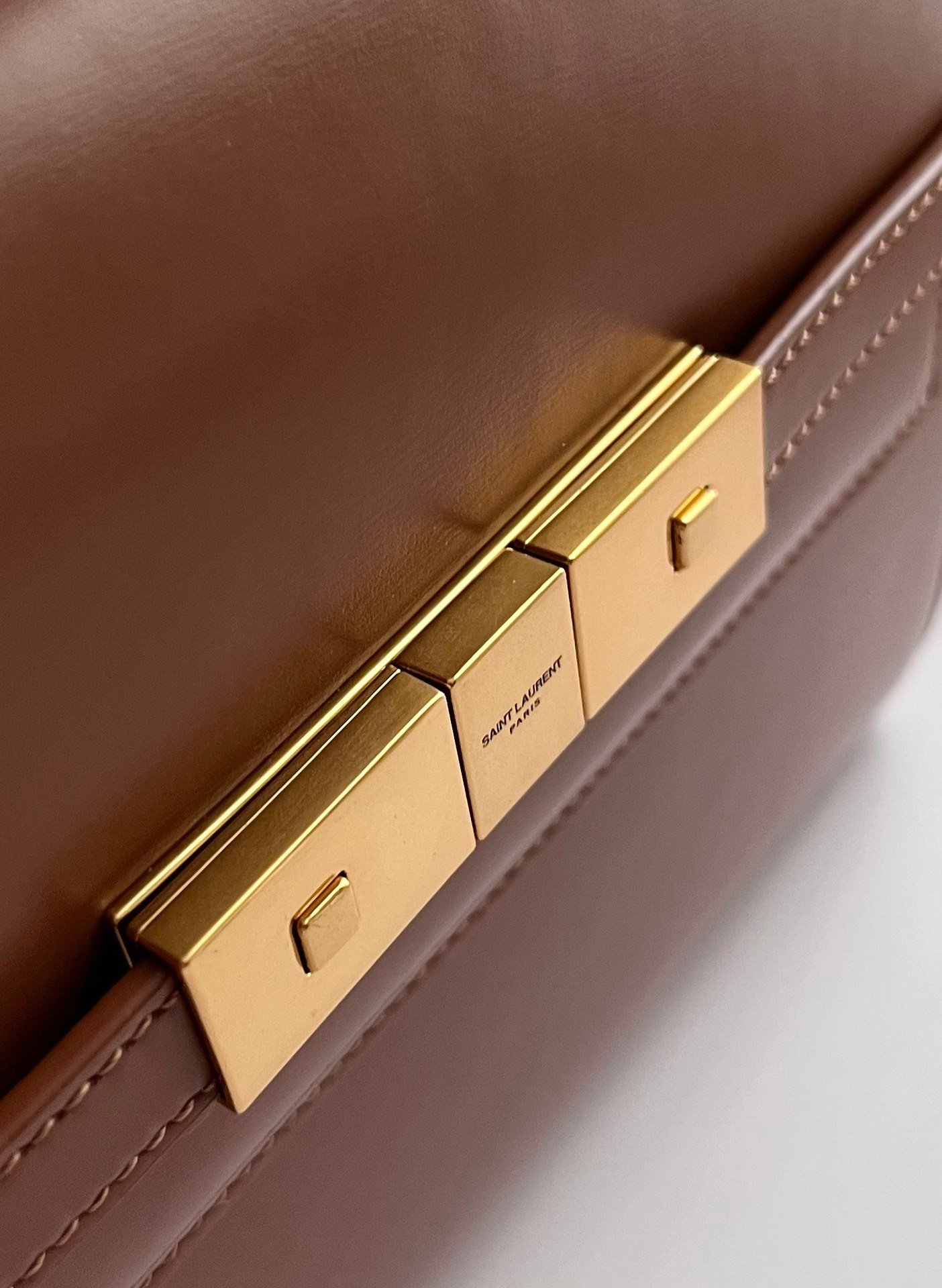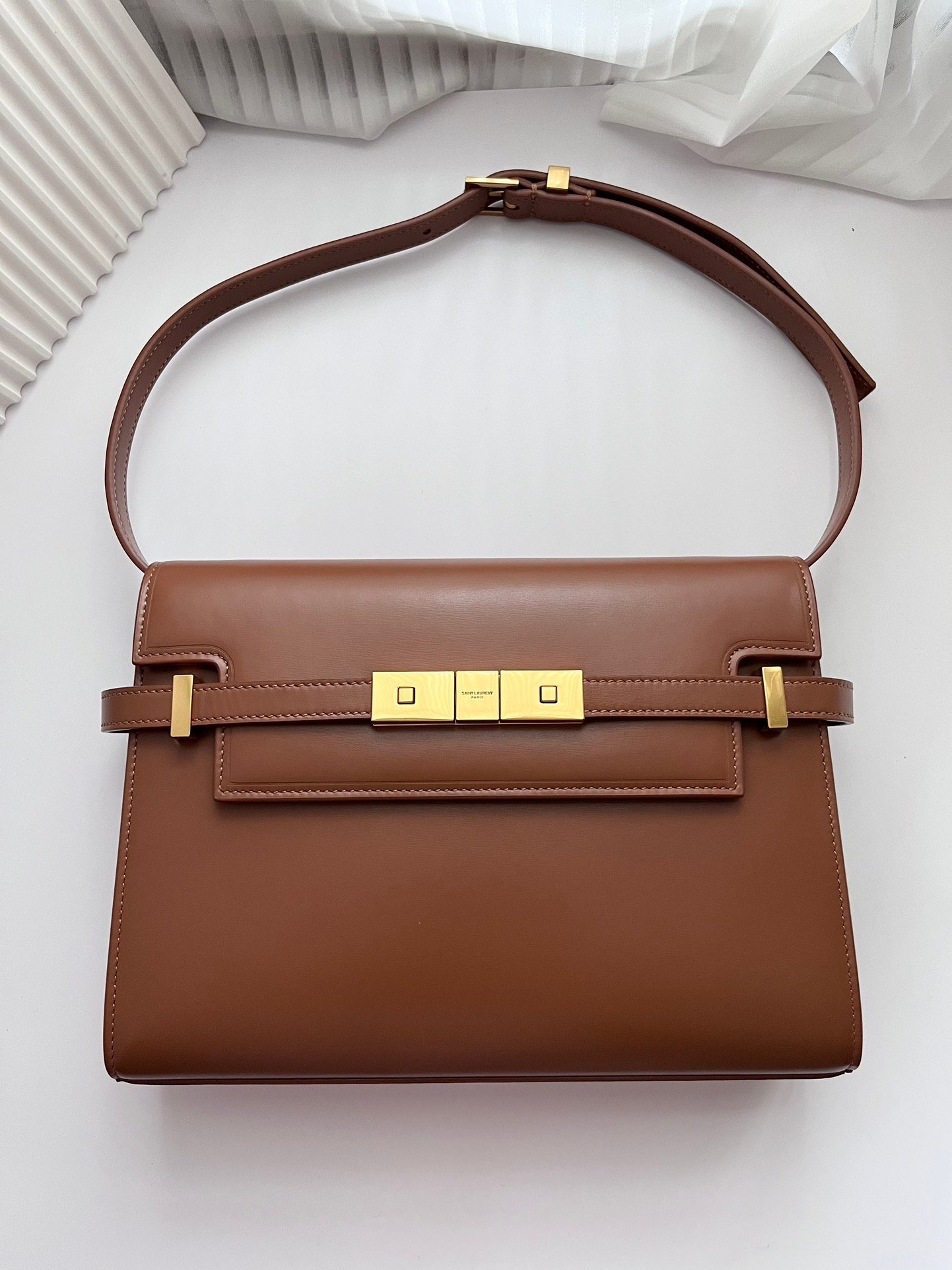 YSL Manhattan baguette bag caramel brown small large goods real shot