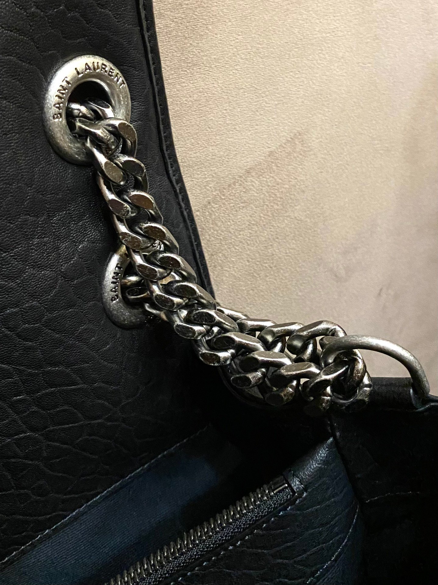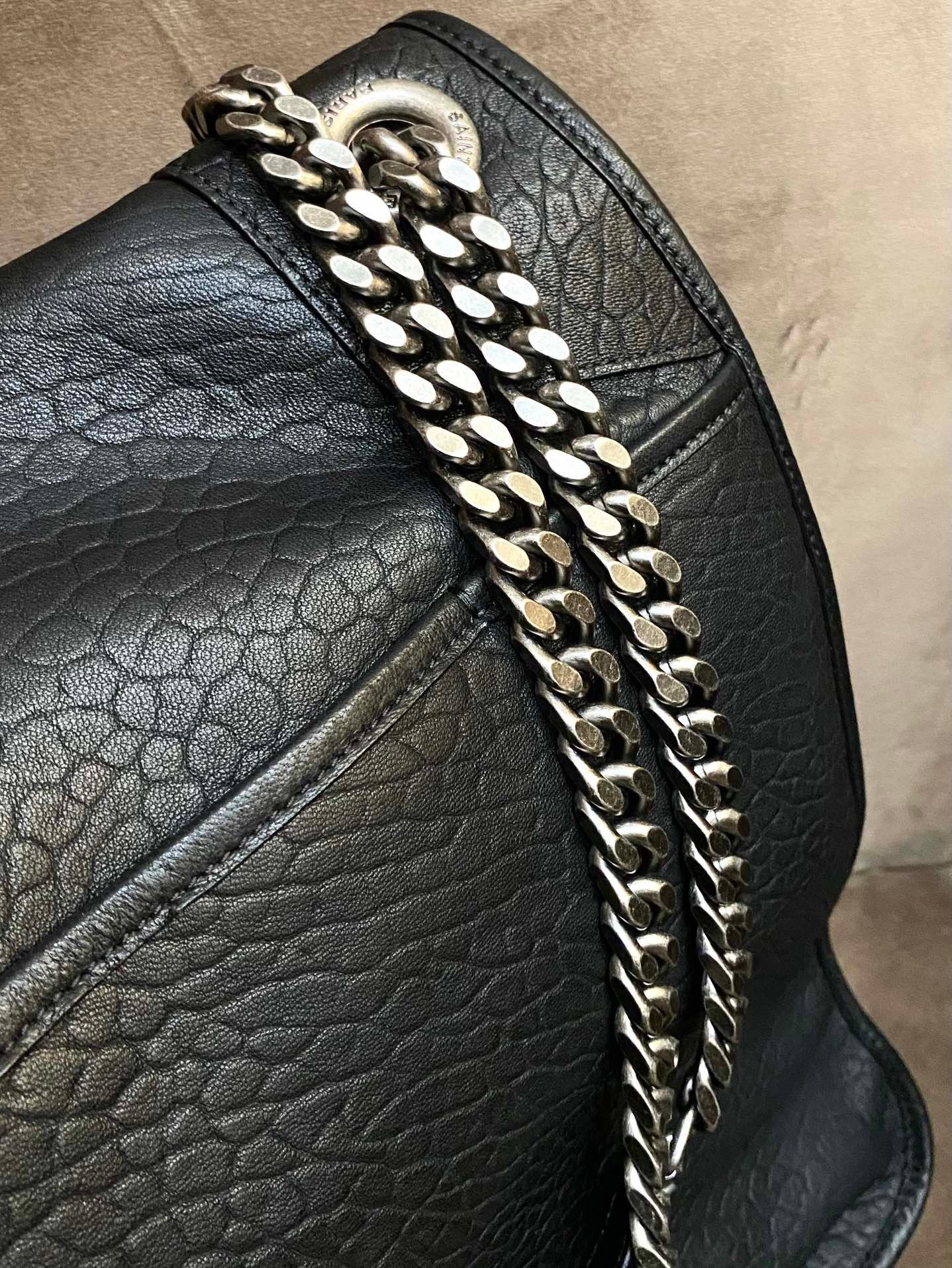 YSL Niki old sheepskin black and silver oversized large goods real shot