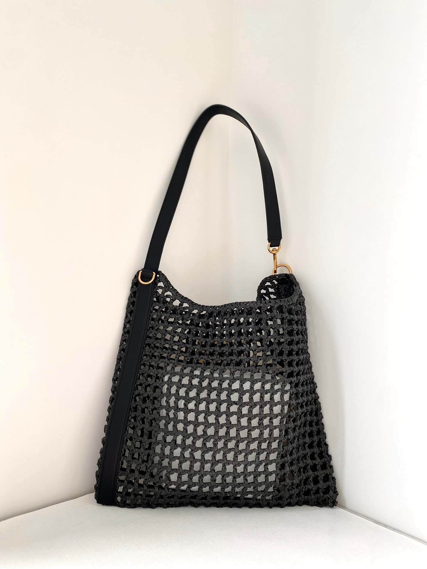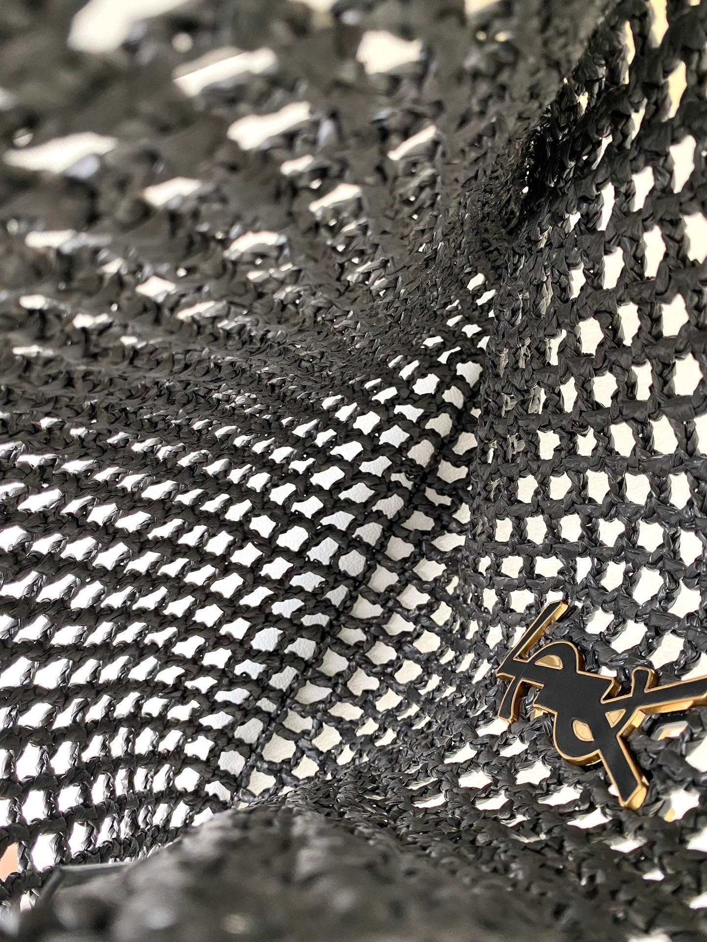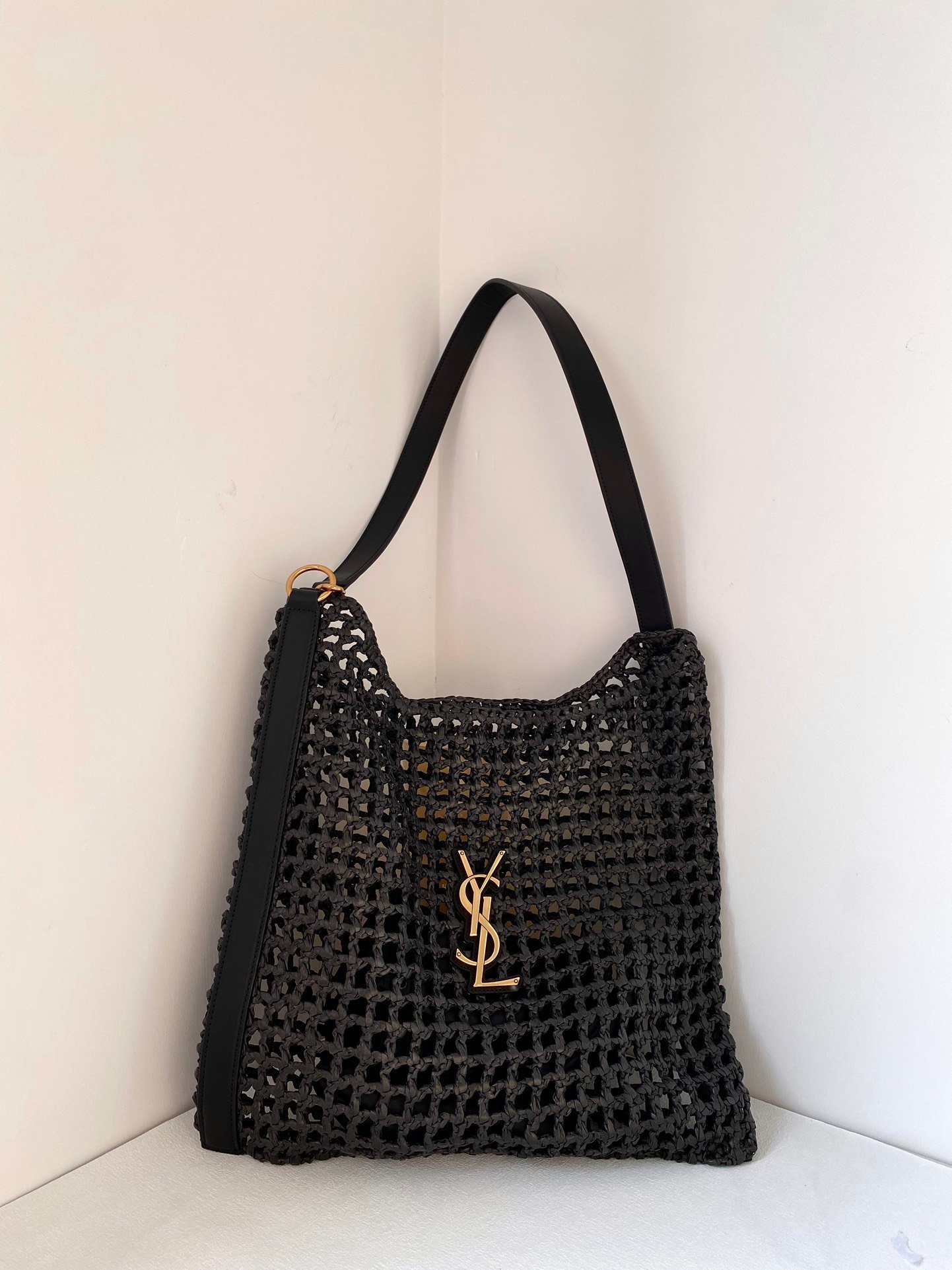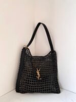 YSL Oxalis Straw Woven Shoulder Backpack Black Big Stock Real Shots